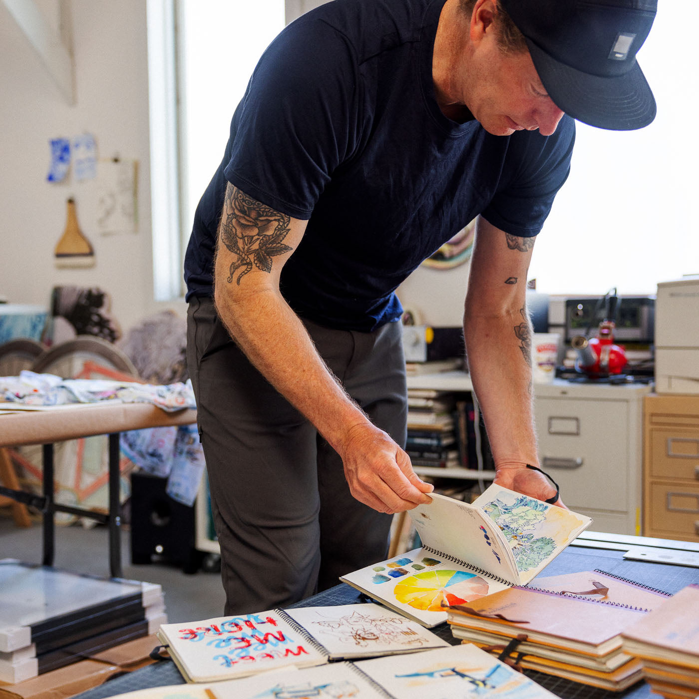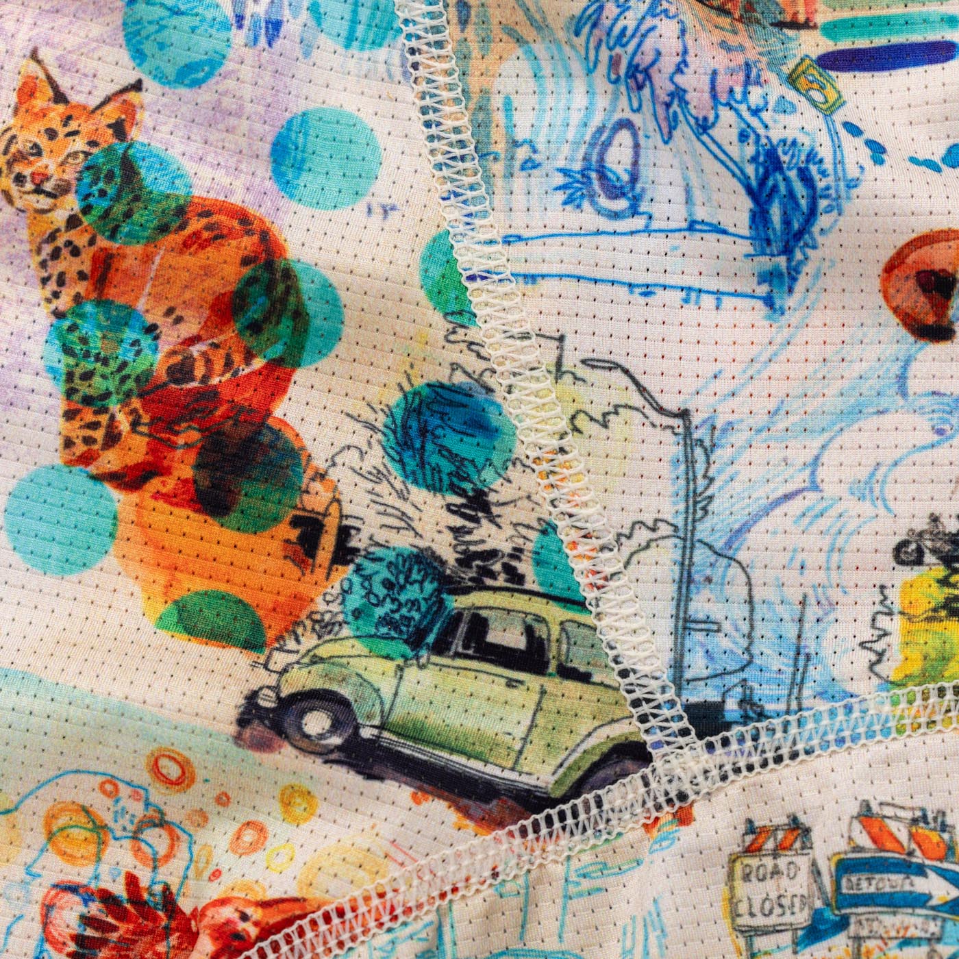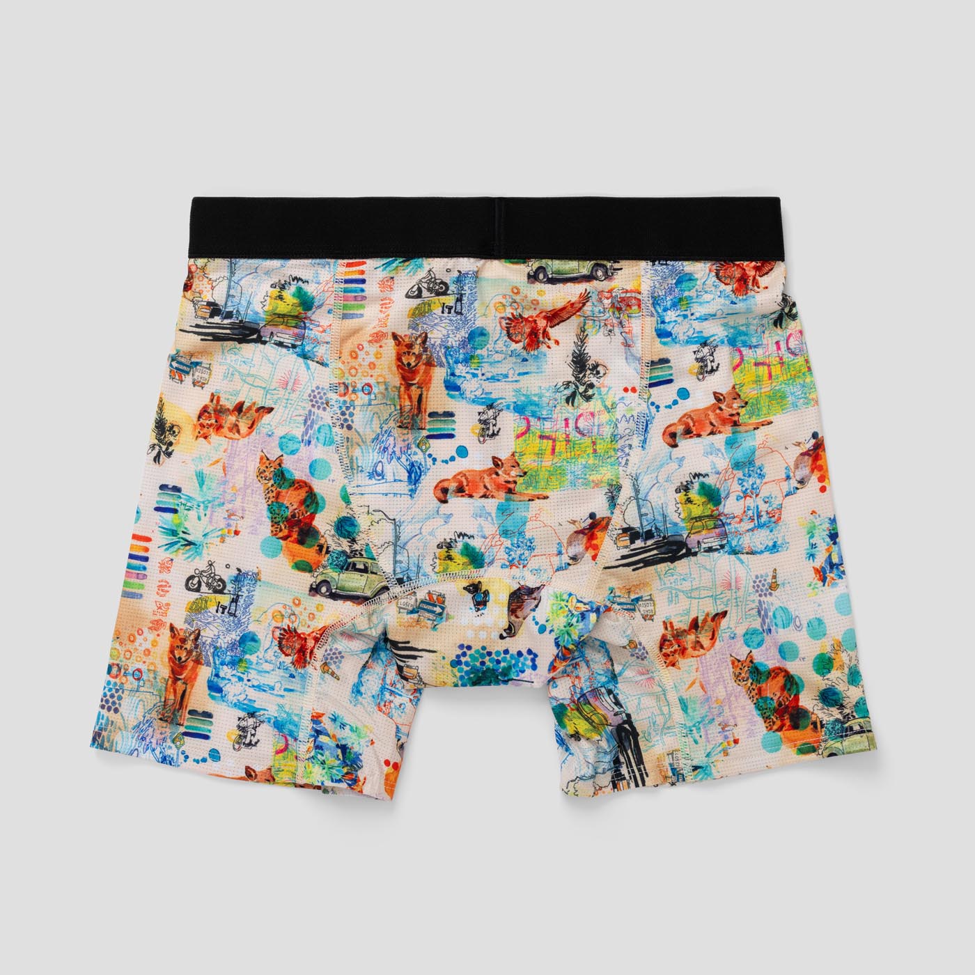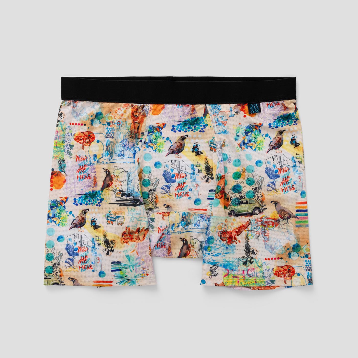 Ten years of Chris McNally's sketchbook, now on ultralight boxers. Every pair's a little different—taco stops, SF streets, airport doodles, and occasional misspelling. Cut and sewn in California—light and made for hot days, sketchy routes, or long layovers. Thoughtfully constructed with Oeko-Tex-approved recycled fabric, the open-box mesh fabric masters moisture-wicking and breathability. The flyless pouch adds a simple convenience, while the odor-resistant property keeps things fresh. Tailored with a comfortable waistband and a full gusset to eliminate pressure points while riding, these boxer briefs are a seamless fit for all aspects of your life. You could make a commando joke, Ornot.