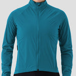 That’s not all, we designed a lofted pattern at key points to insulate, ensuring that you stay warm and dry. Speaking of dry, the fabric has a patented c0 PFAS-free DWR treatment that sheds moisture and dries fast. For its final magic trick - when not being worn, it neatly packs into its rear pocket and for stowage in a jersey pocket or strapped to your bike (see our Macgyver Strap).