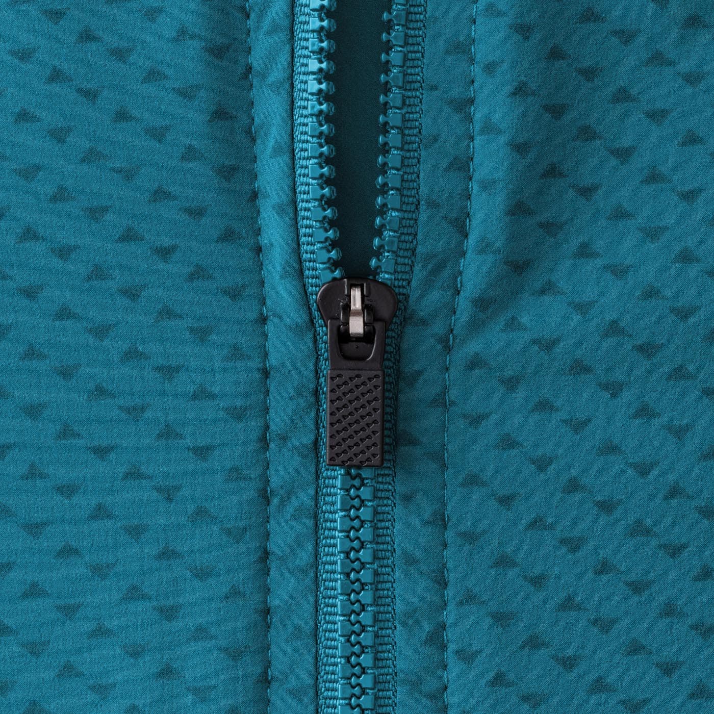 Each strand of fiber used in this fabric has a patented treatment that permanently resists moisture. This makes the jacket water-resistant and quick drying without a membrane or a coating that can wash off.