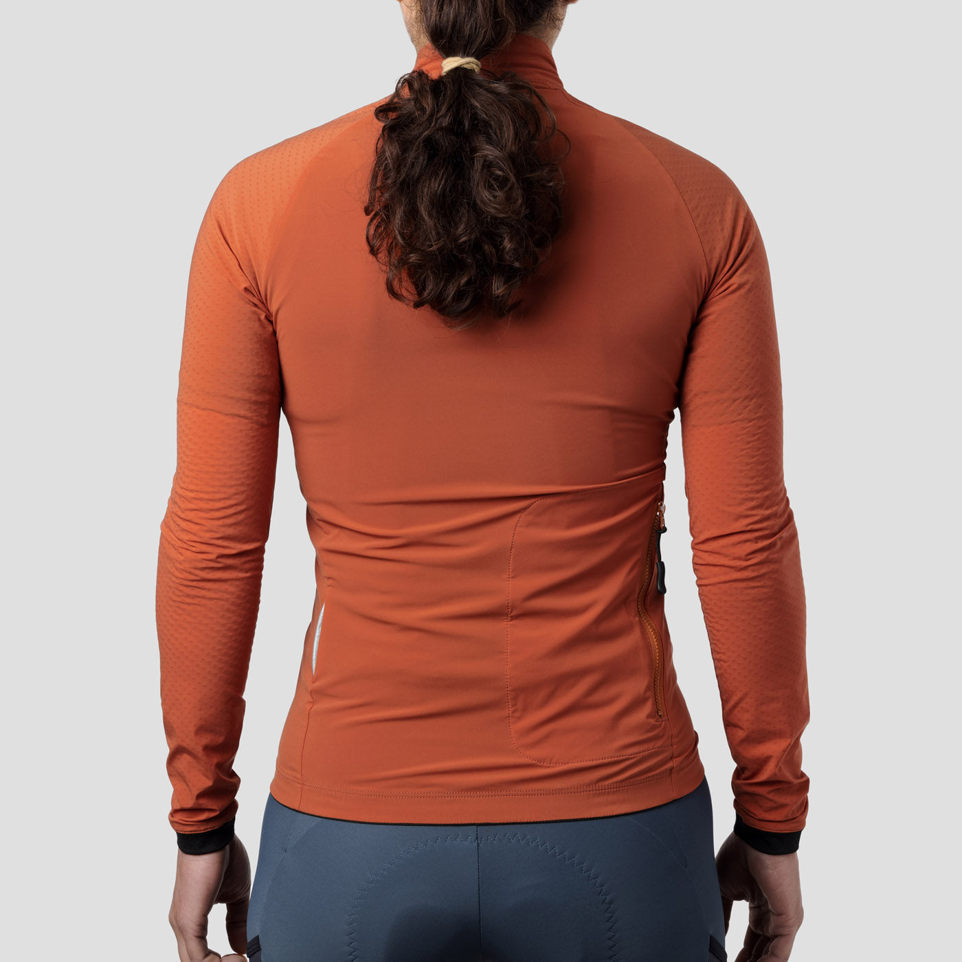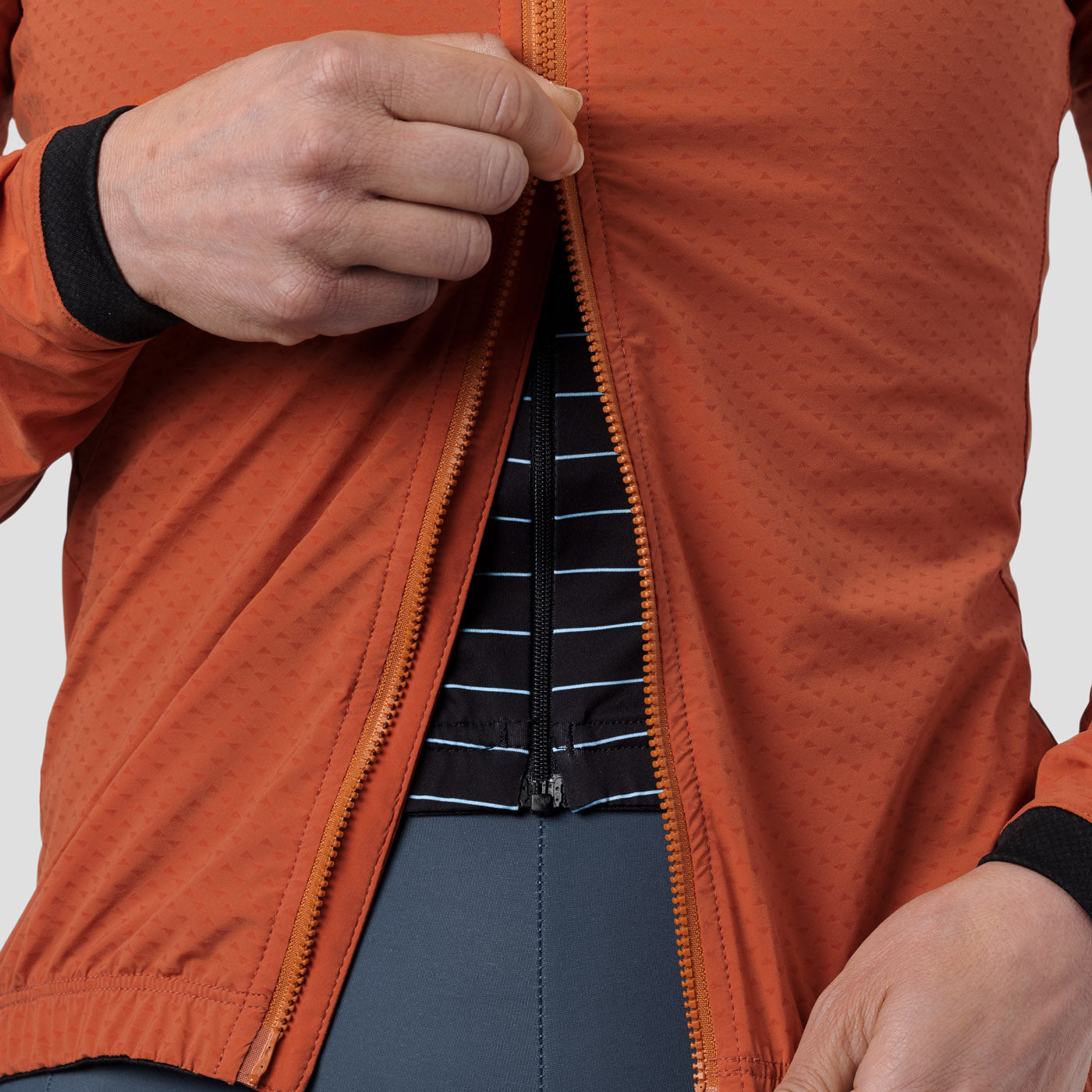 This jacket features a double zipper not only to allow a big vent for cooling off on long climbs or short warm microclimates, but most importantly - it allows quick and easy access to rear jersey pockets without unzipping the whole jacket.