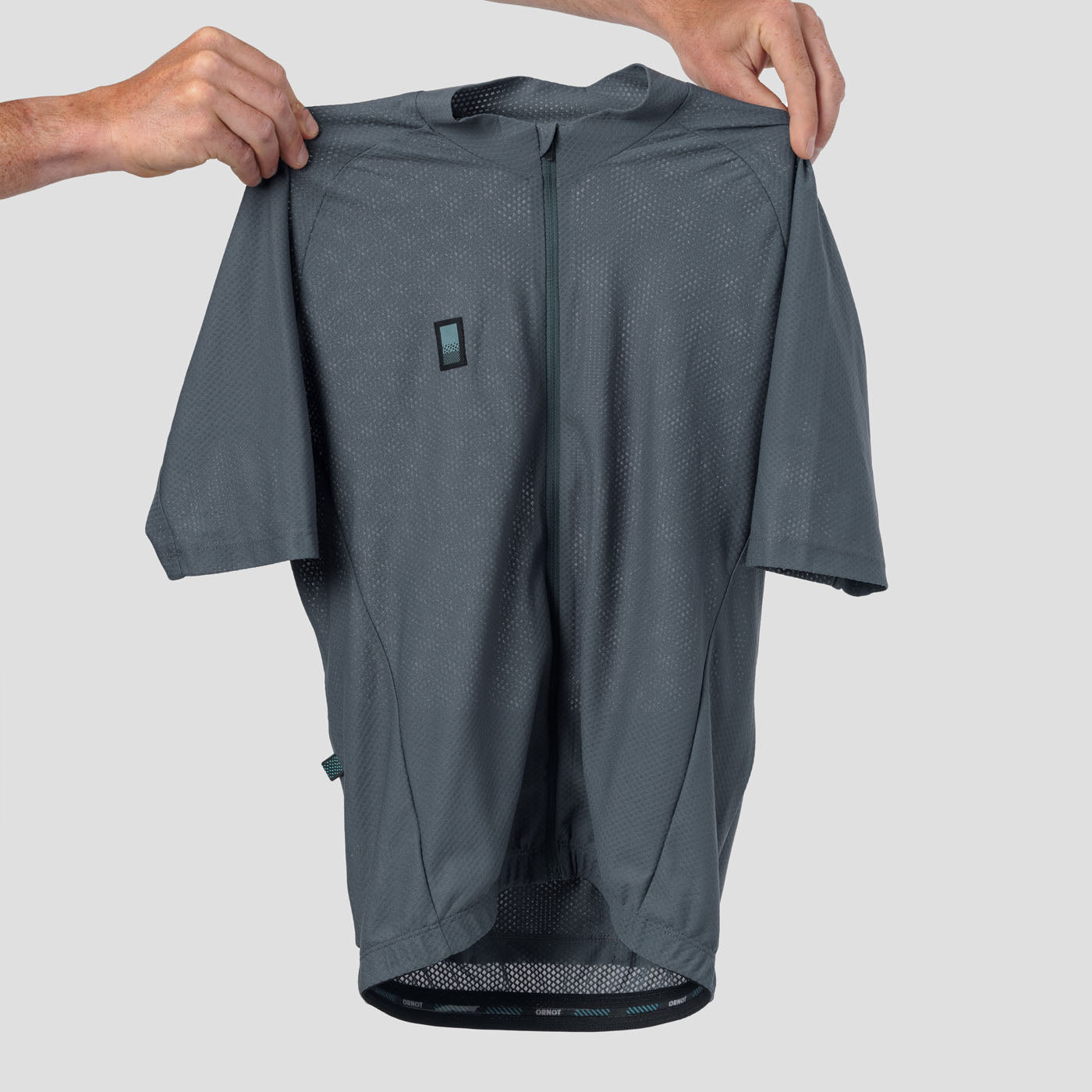 We made this jersey for the heat, even though we don’t experience much of it in San Francisco. This high-performance summer jersey is for those that constantly “run hot” or when the temps approach the triple-digits. The open-knit mesh fabric is highly breathable to keep you cool, and the lightweight, 100% poly construction is exceptional at moving moisture and drying quickly. You could jump in a roadside creek to cool off, Ornot.