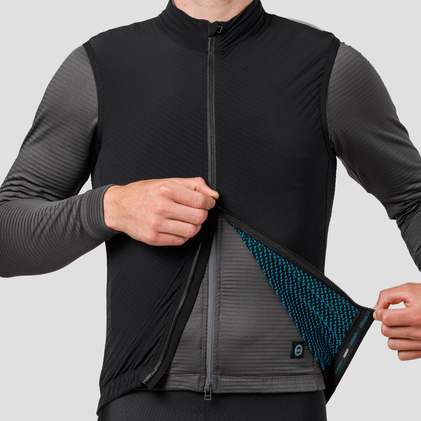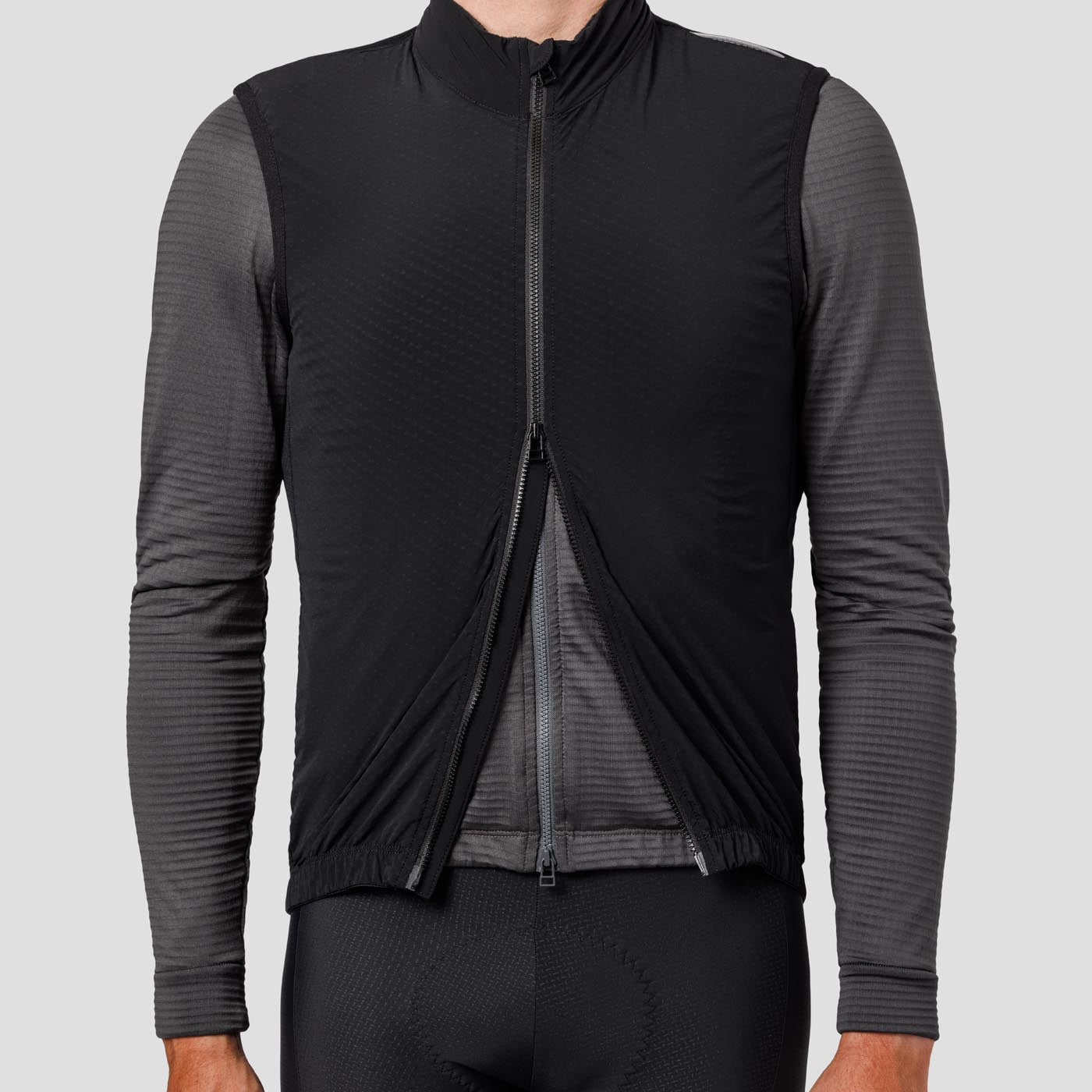 The Micro Climate Vest is our ultimate choice for breathable warmth. Based on our famous Micro Climate Jacket, this vest features a flocked front and a lightweight grid fleece back for an ideal balance of insulation and breathability. You'll be happy to know that we brought back 3 rear pockets! We also added reflective details and wrapped it up with a 2-way zipper. This vest is small enough to pack but breathable enough to wear all day. It’s part of our special projects collection due to the inclusion of deadstock fabric used on the back panel and neck interior. You could call it a Gilet, Ornot. Made in Oakland, CA.