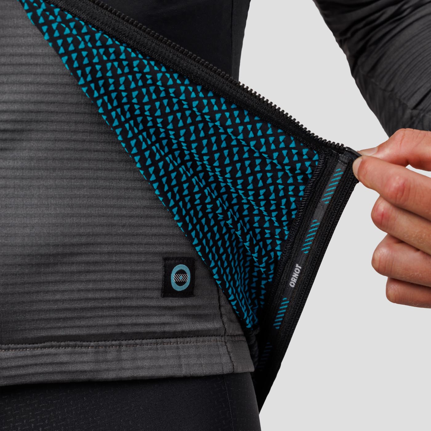 Our custom fabric is lightweight, durable, breathable, and it compresses down to easily fit in your back jersey pocket.