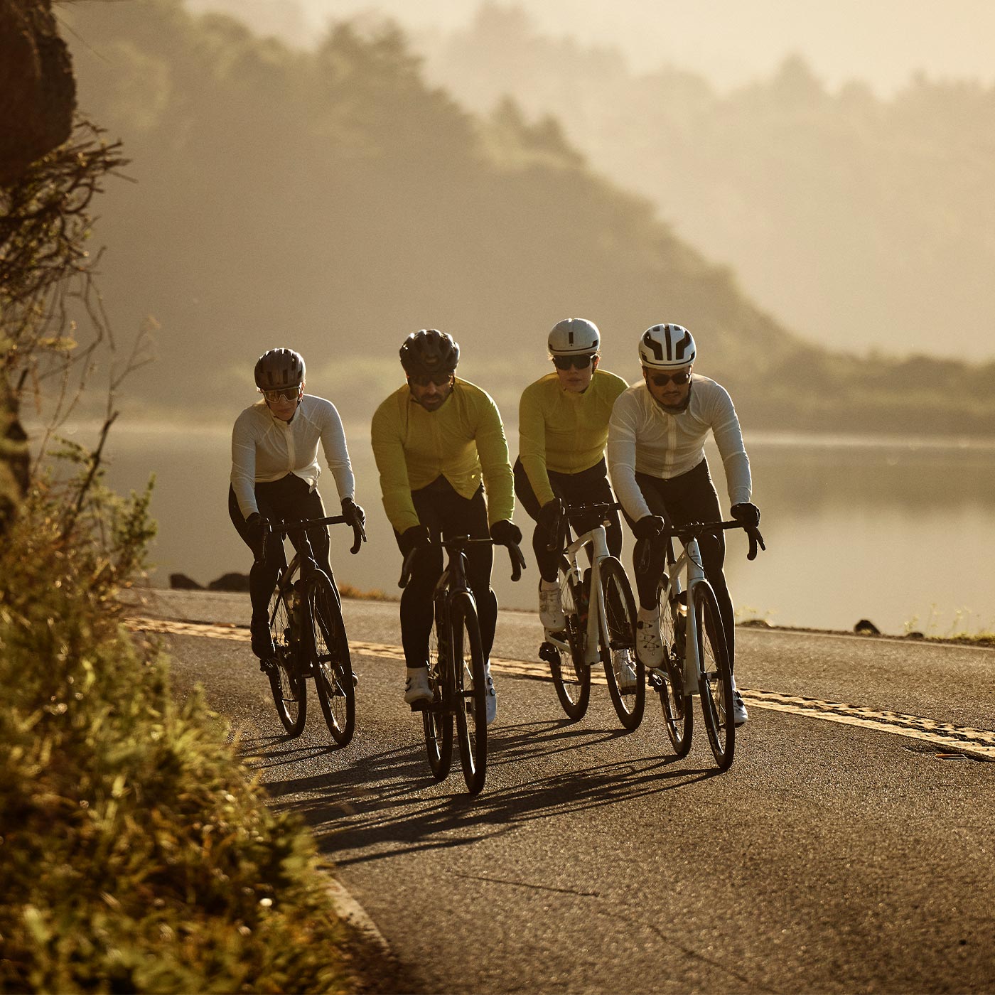 foggy coastal mornings • windy ridgeline crosswinds • sun-baked inland valleys • shaded redwood descents • cold canyon air • urban heat pockets between buildings • damp bayfront headwinds • exposed fire road climbs • marine layer chill • high-elevation temperature drops • misty drizzle that never quite becomes rain • afternoon sun breaking through fog • bridge crossings with full crosswind • tree-covered singletrack that stays cold all day • concrete corridors that radiate heat