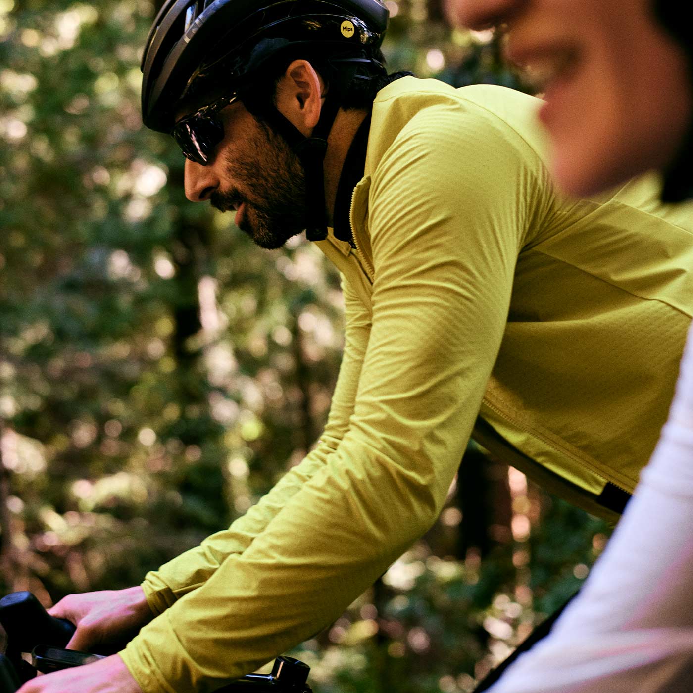 That’s not all, we designed a lofted pattern at key points to insulate, ensuring that you stay warm and dry. Speaking of dry, the fabric has a patented c0 PFAS-free DWR treatment that sheds moisture and dries fast. For its final magic trick - when not being worn, it neatly packs into its rear pocket and for stowage in a jersey pocket or strapped to your bike (see our Macgyver Strap).