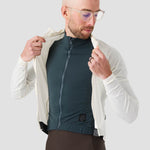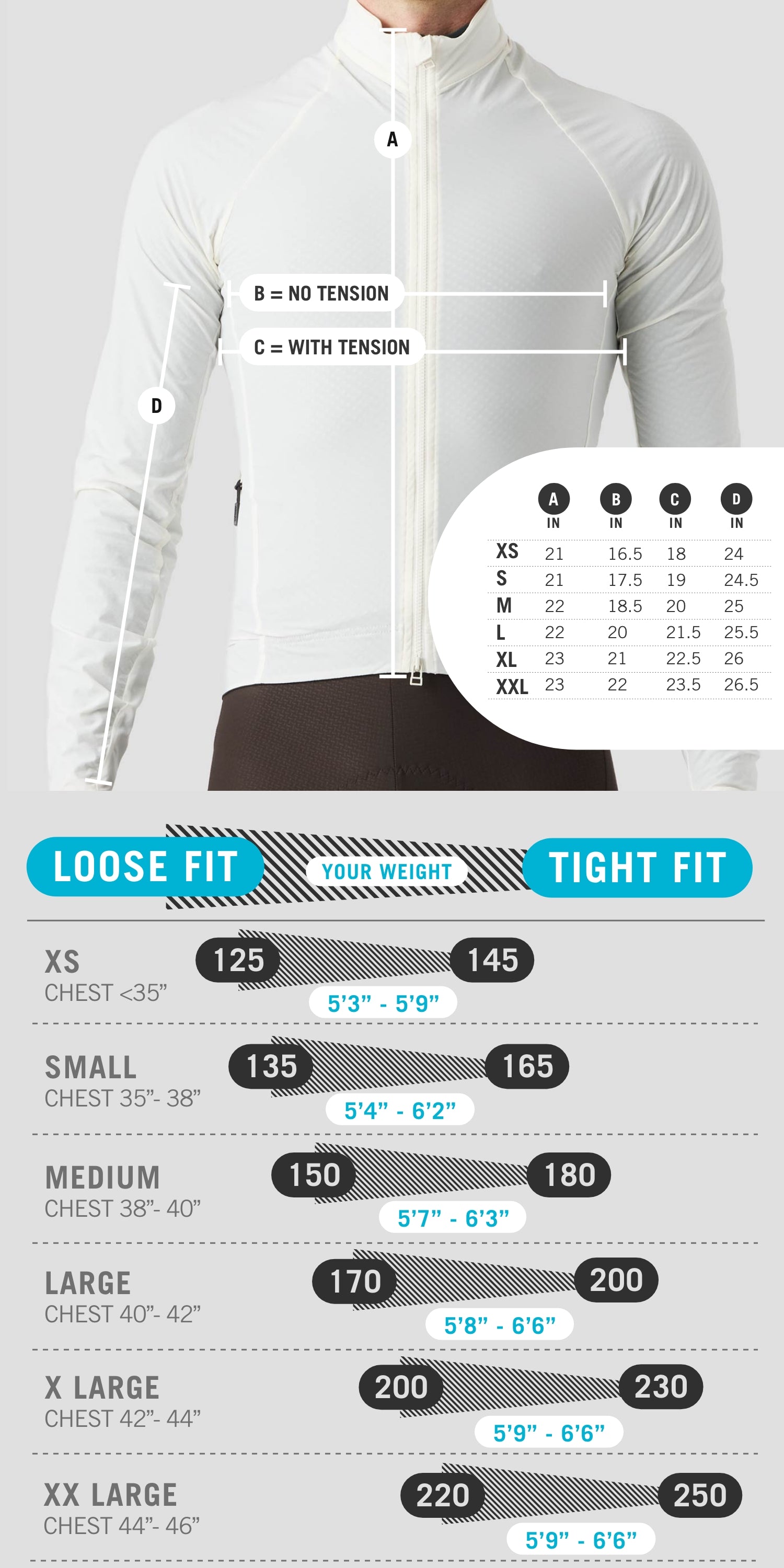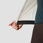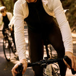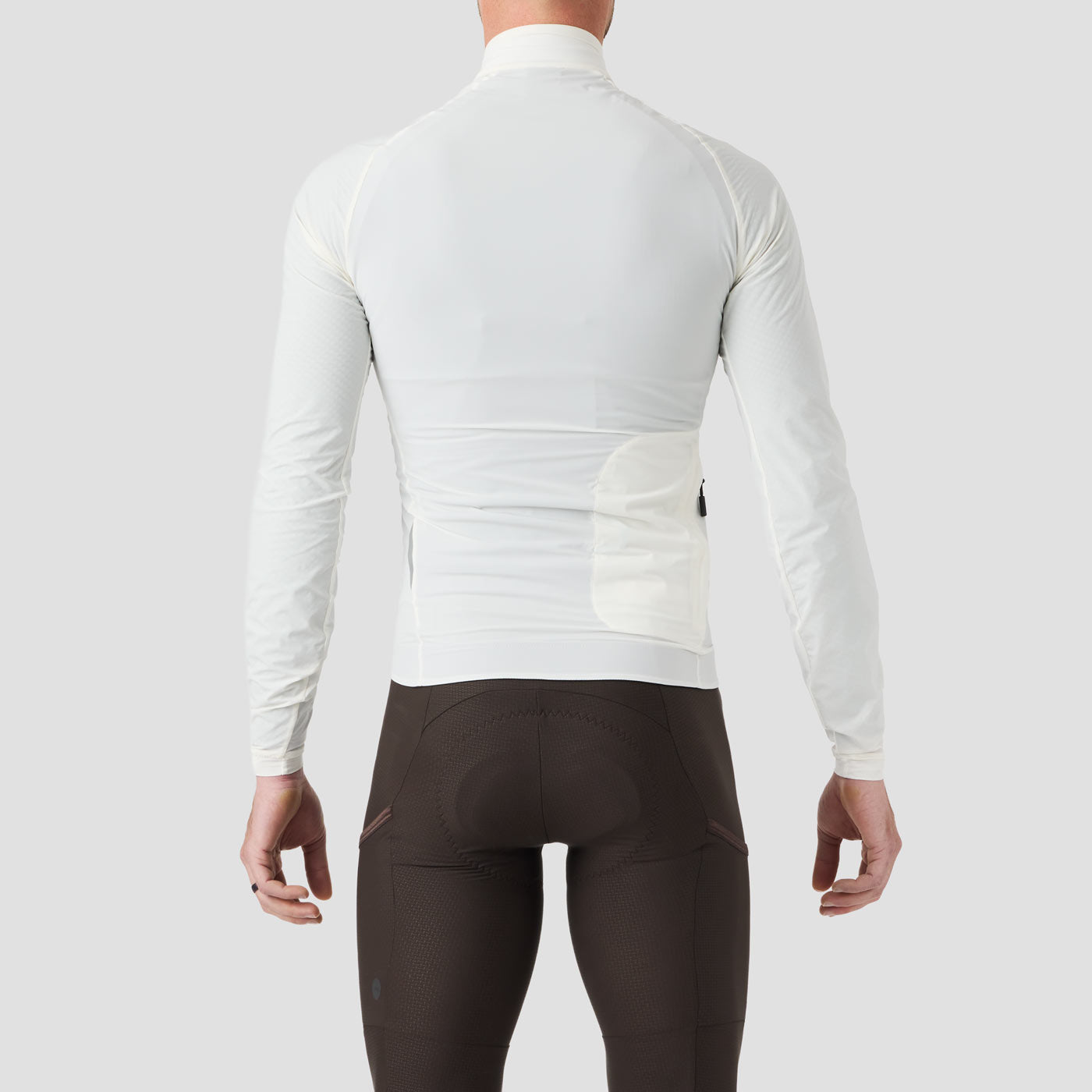 That’s not all, we designed a lofted pattern at key points to insulate, ensuring that you stay warm and dry. Speaking of dry, the fabric has a patented c0 PFAS-free DWR treatment that sheds moisture and dries fast. For its final magic trick - when not being worn, it neatly packs into its rear pocket and for stowage in a jersey pocket or strapped to your bike (see our Macgyver Strap).