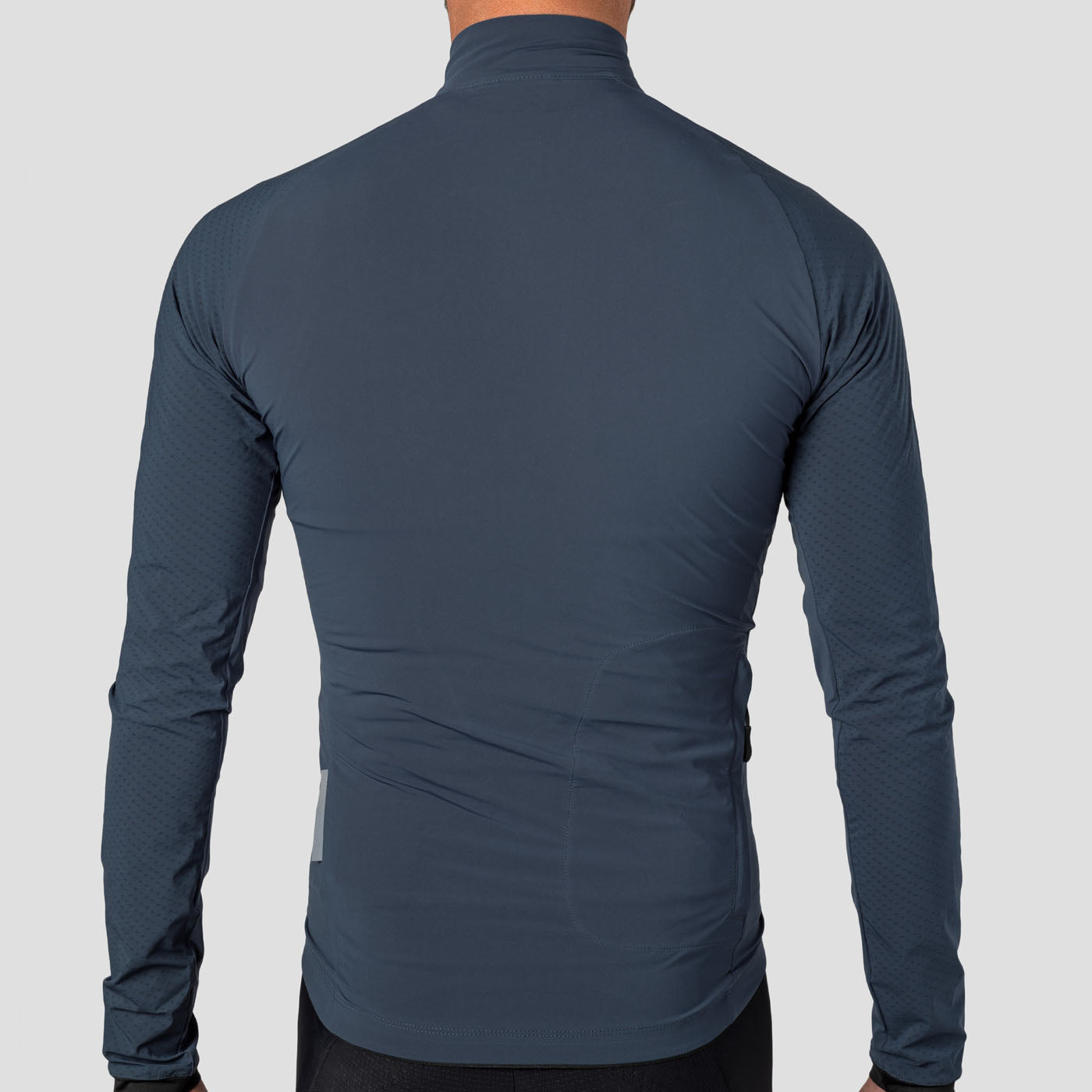 This jacket features a double zipper not only to allow a big vent for cooling off on long climbs or short warm microclimates, but most importantly - it allows quick and easy access to rear jersey pockets without unzipping the whole jacket.