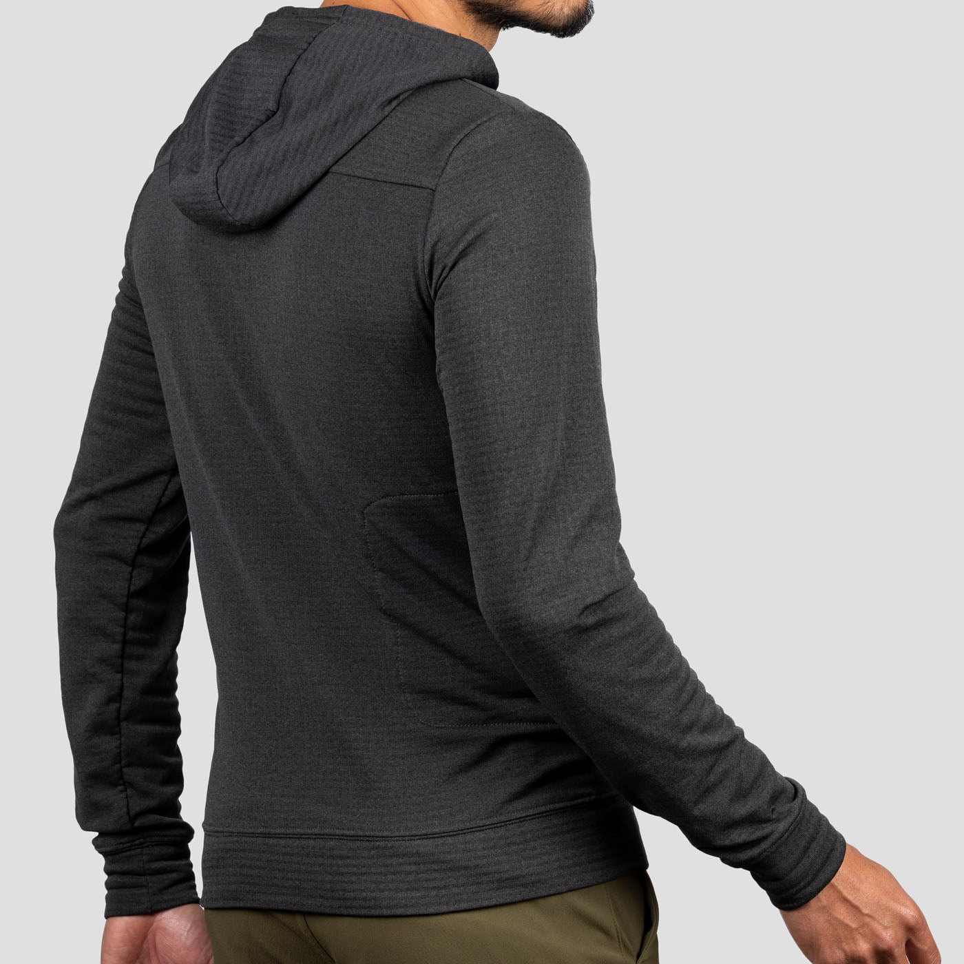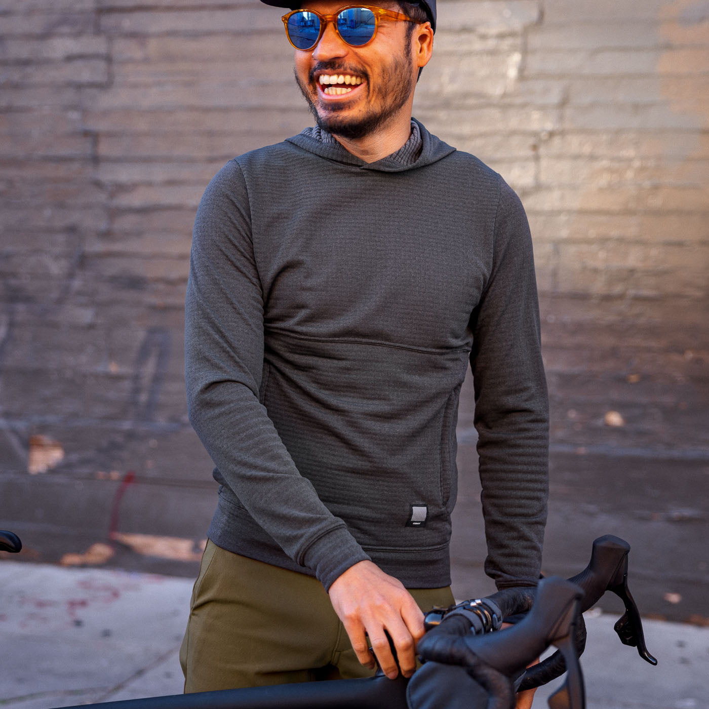 Constructed with Polartec Power Grid fleece, this is everything you need in a hooded riding pullover. The Midweight fabric strengthens performance efficiency by increasing warmth and breathability, while also reducing fabric mass. Translation, it's warm and cozy without being bulky. We use deadstock fabric that eliminates virgin fabric milling and ensures this fabric doesn't end up in a landfill. That also means that this is a limited edition piece, perfect for day-to-day riding and life activities, you could leave your hat at home, Ornot.FEATURES