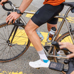 Built for the minimalist and perfect for every ride or adventure - yep, even weddings! These socks sport an open mesh weave on top for breathability and moisture-wicking magic that keeps your feet fresh, mile after mile. Lightweight? You bet. Made in the USA from recycled water bottles? Absolutely. Perfect for the Tuesday Donut Ride or any day that ends in Y. Wear them to work, Ornot.