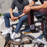 Built for the minimalist and perfect for every ride or adventure - yep, even weddings! These socks sport an open mesh weave on top for breathability and moisture-wicking magic that keeps your feet fresh, mile after mile. Lightweight? You bet. Made in the USA from recycled water bottles? Absolutely. Perfect for the Tuesday Donut Ride or any day that ends in Y. Wear them to work, Ornot.