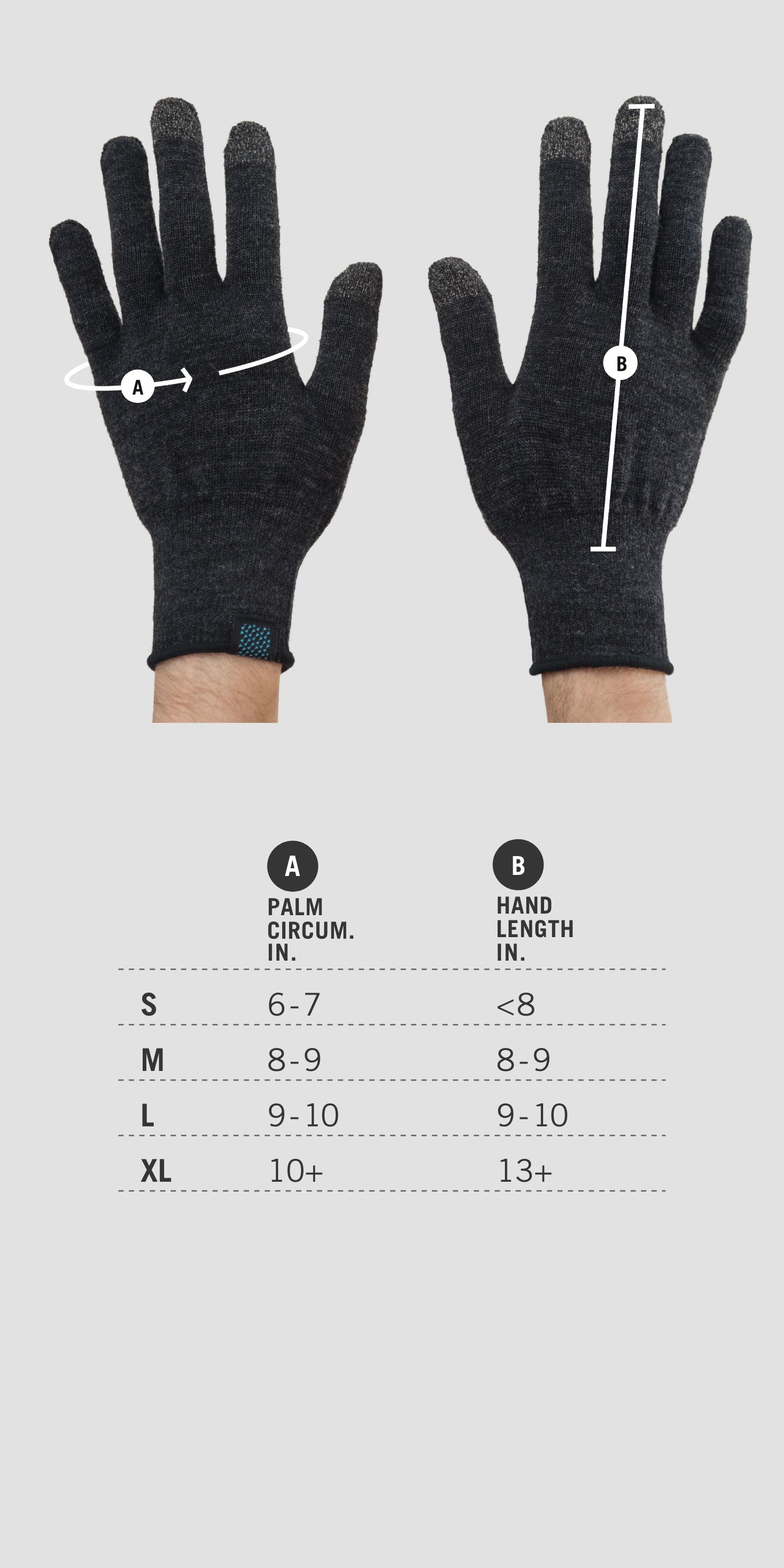 · These gloves are stretchy. Find your size with the chart, and size down if you want an extra-tight fit.