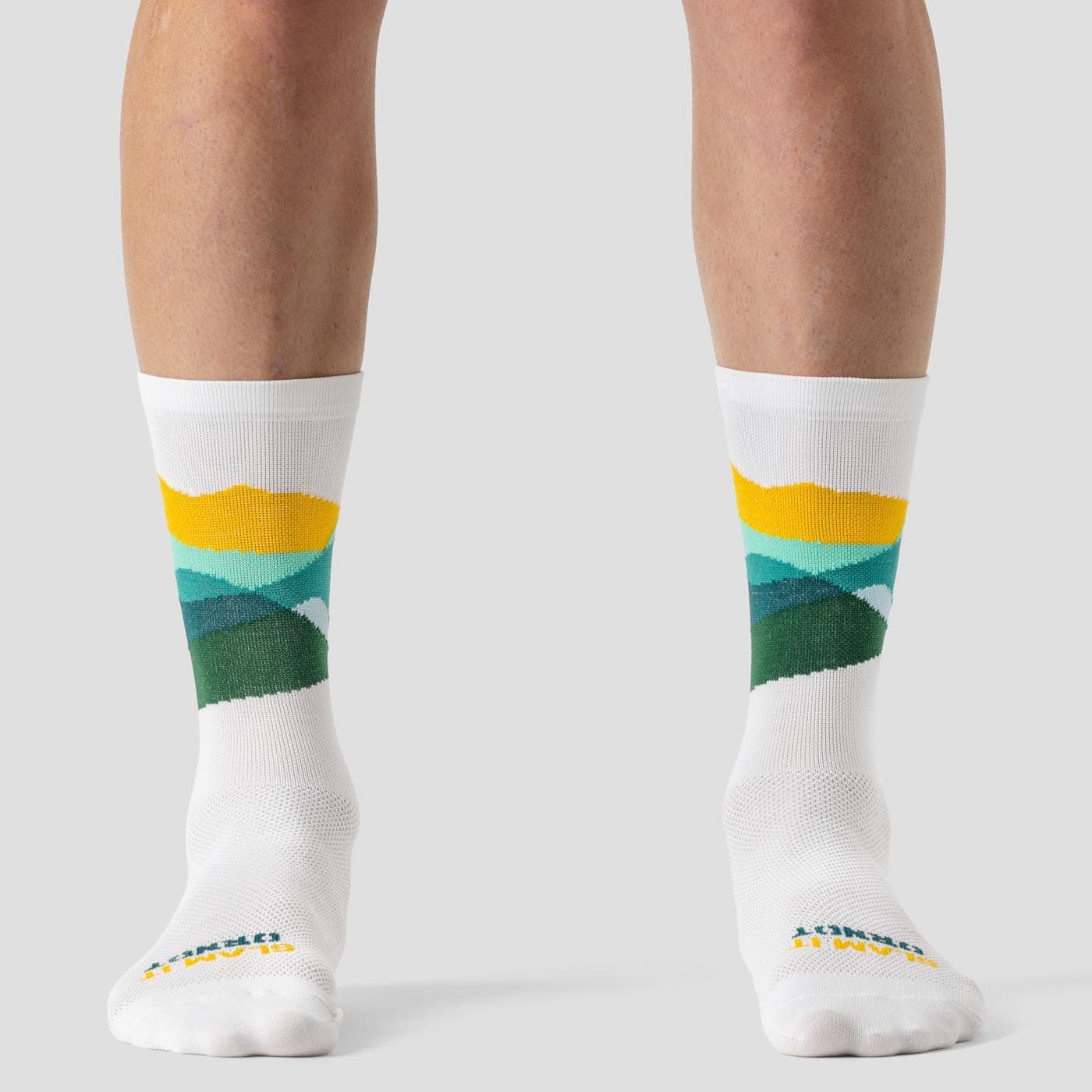 Marin County's Mt. Tamalpais and its winding roads, panoramic views, and lung-busting climbs inspired these socks. Built for the minimalist and perfect for every adventure, these socks sport an open mesh weave on top for breathability and moisture-wicking magic that keeps your feet fresh, mile after mile. Lightweight? You bet. Made in the USA from recycled water bottles? Absolutely. From conquering Tam’s twists and turns to the Tuesday Donut Ride (or any day that ends in Y), these socks have your back—er, feet. Wear them to work, Ornot.