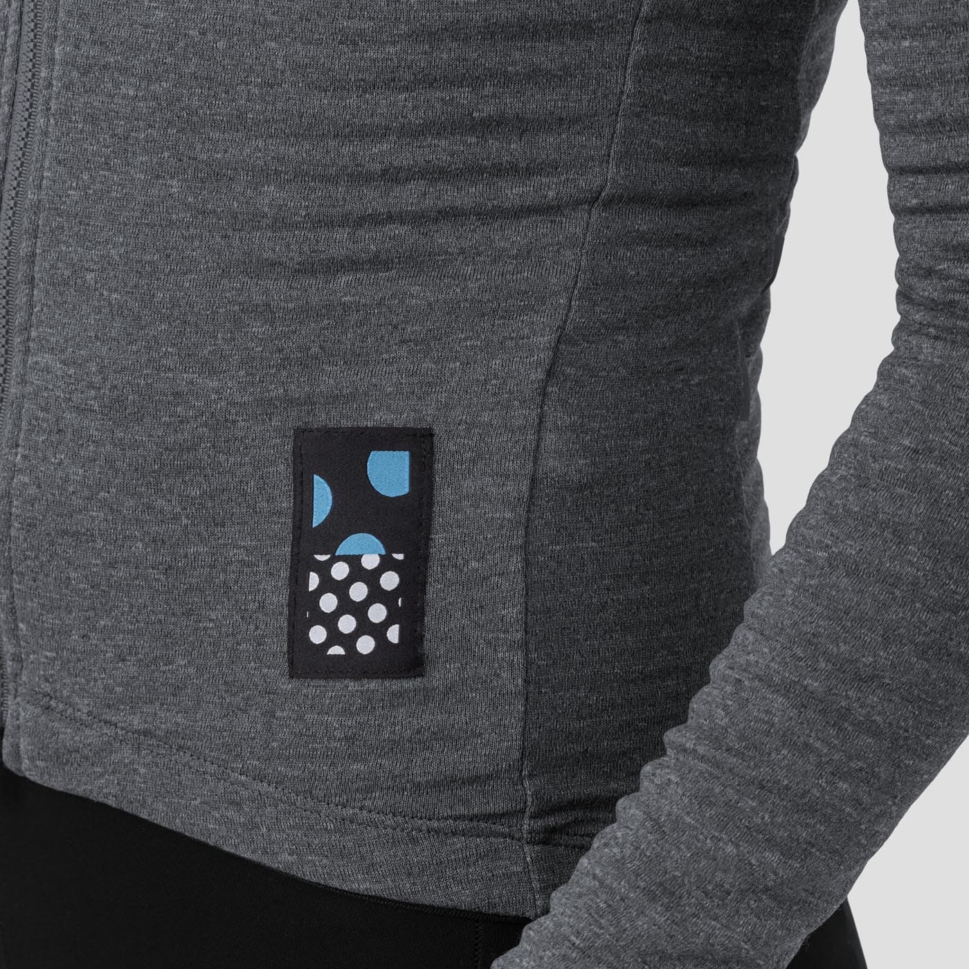 A winter bike jersey built with 3 of our favorite things; gridded fleecy interior, Merino Wool, and deadstock fabric. Built with Polartec Power Wool, this jersey has everything you love about extra-fine merino wool (antimicrobial, wicking, keeps you warm even when wet). The grid structure helps trap air pockets to keep you warm under a layer but quickly breathes and dumps heat when worn on its own. Bonus - Merino Wool is capable of wicking moisture in the vapor state, this keeps you more comfortable and less sweaty.
