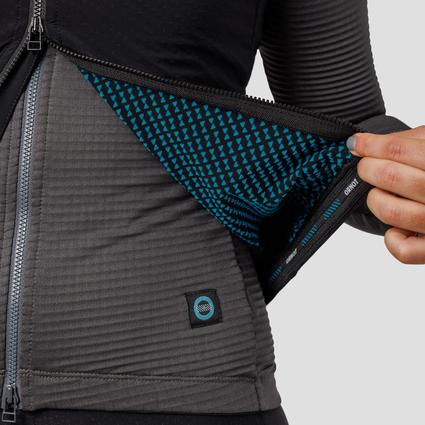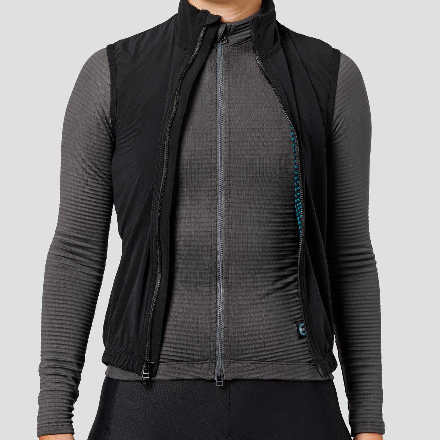 The Micro Climate Vest is our ultimate choice for breathable warmth. Based on our famous Micro Climate Jacket, this vest features a flocked front and a lightweight grid fleece back for an ideal balance of insulation and breathability. You'll be happy to know that we brought back 3 rear pockets! We also added reflective details and wrapped it up with a 2-way zipper. This vest is small enough to pack but breathable enough to wear all day. It’s part of our special projects collection due to the inclusion of deadstock fabric used on the back panel and neck interior. You could call it a Gilet, Ornot. Made in Oakland, CA.