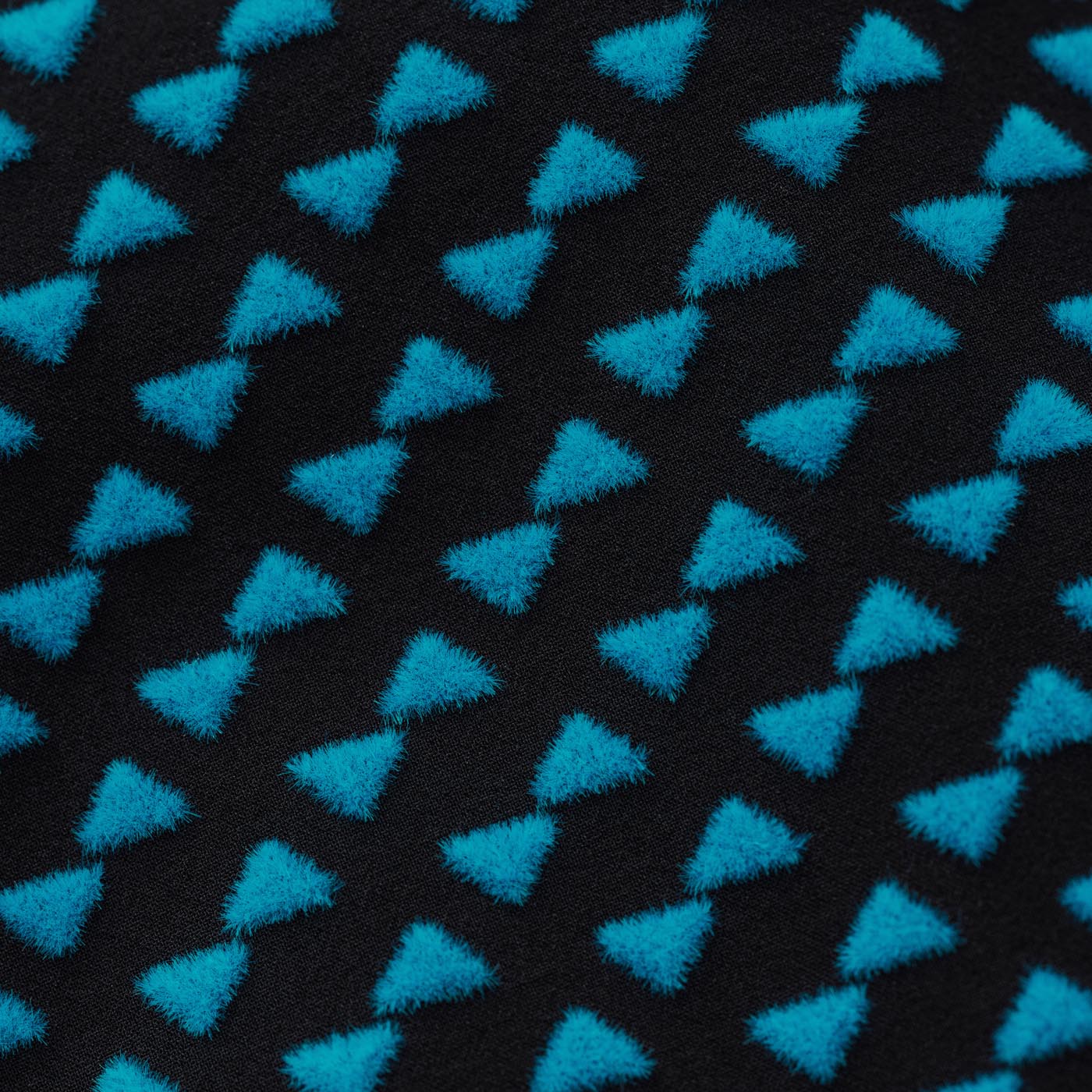 This fabric is top shelf. Specifically, it's an extremely fine stretch woven, with a whole lot of technology in the yarn and milling techniques. The lofted insulation, those little fuzzy "bowties", serve an important role in trapping heat, while the fabric does its job allowing moisture to escape, but not enter.
