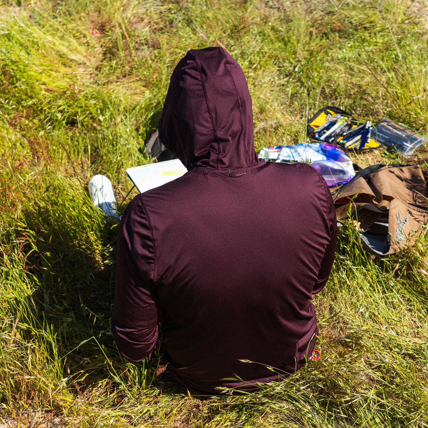 Escape the sun in our Hooded UV Trail Shirt. A go-to for gravel rides, adventures, or beach days. This lightweight, quick-drying shirt is crafted from Italian-made, Oeko-Tex approved recycled fabric, and made in the USA. It boasts UPF 30 sun protection to keep you protected and cool.
