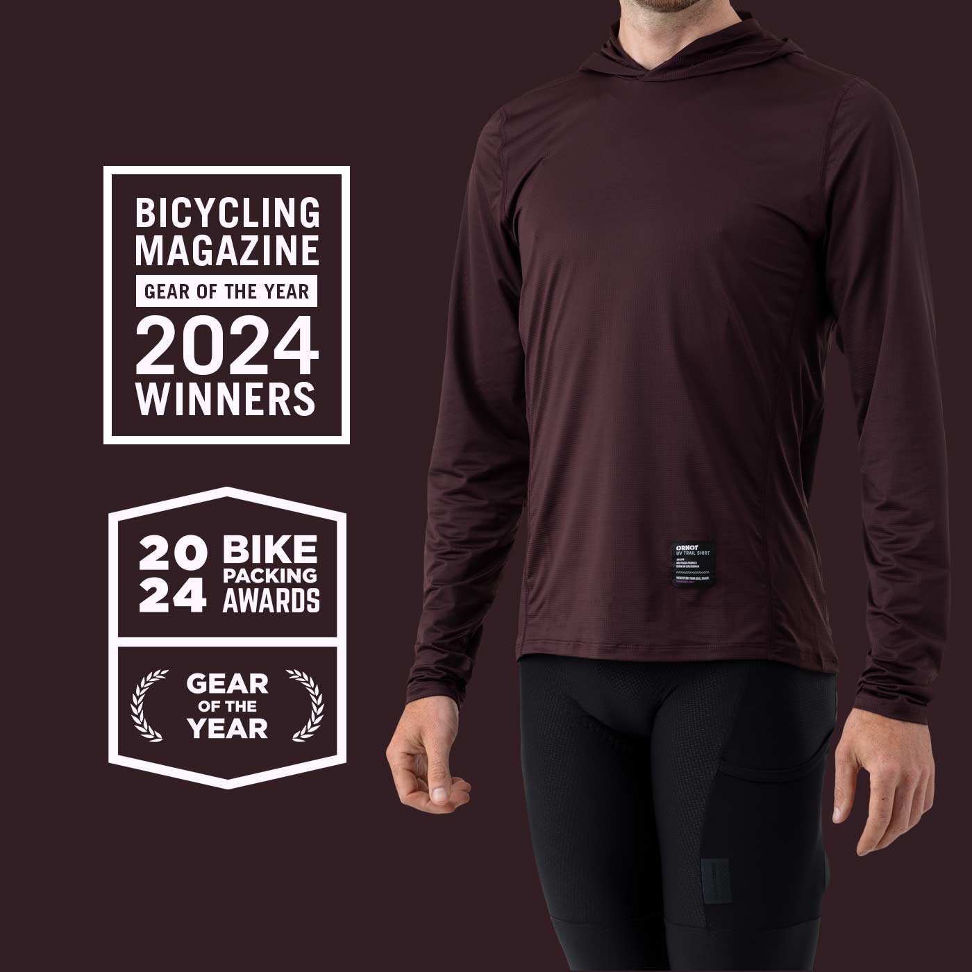 "perfect for commutes, mountain biking, or gravel rides. It is constructed from recycled fabric with UPF 30 sun protection that breathes well."