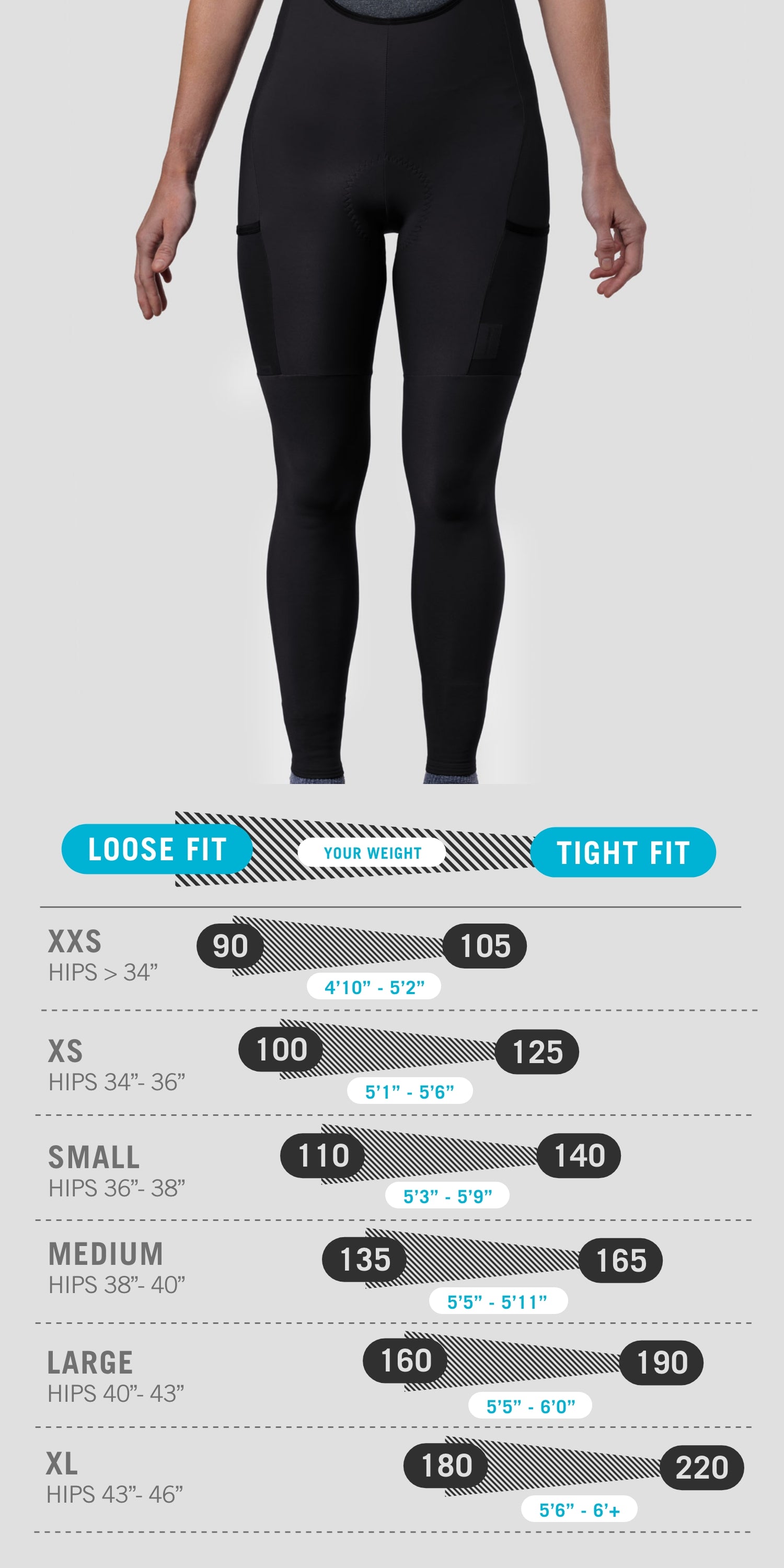 Go with your usual Ornot bib size. These fit like our thermal tights and run just slightly larger than our cargo bib shorts to accommodate for different fabric properties.