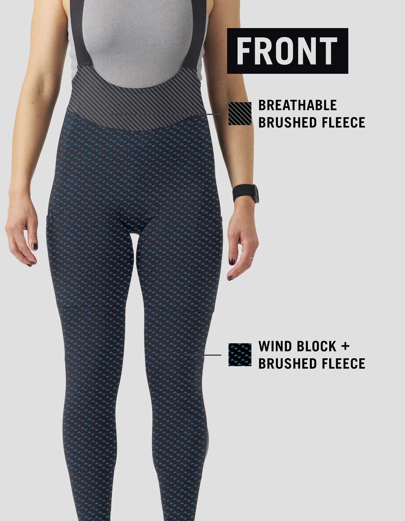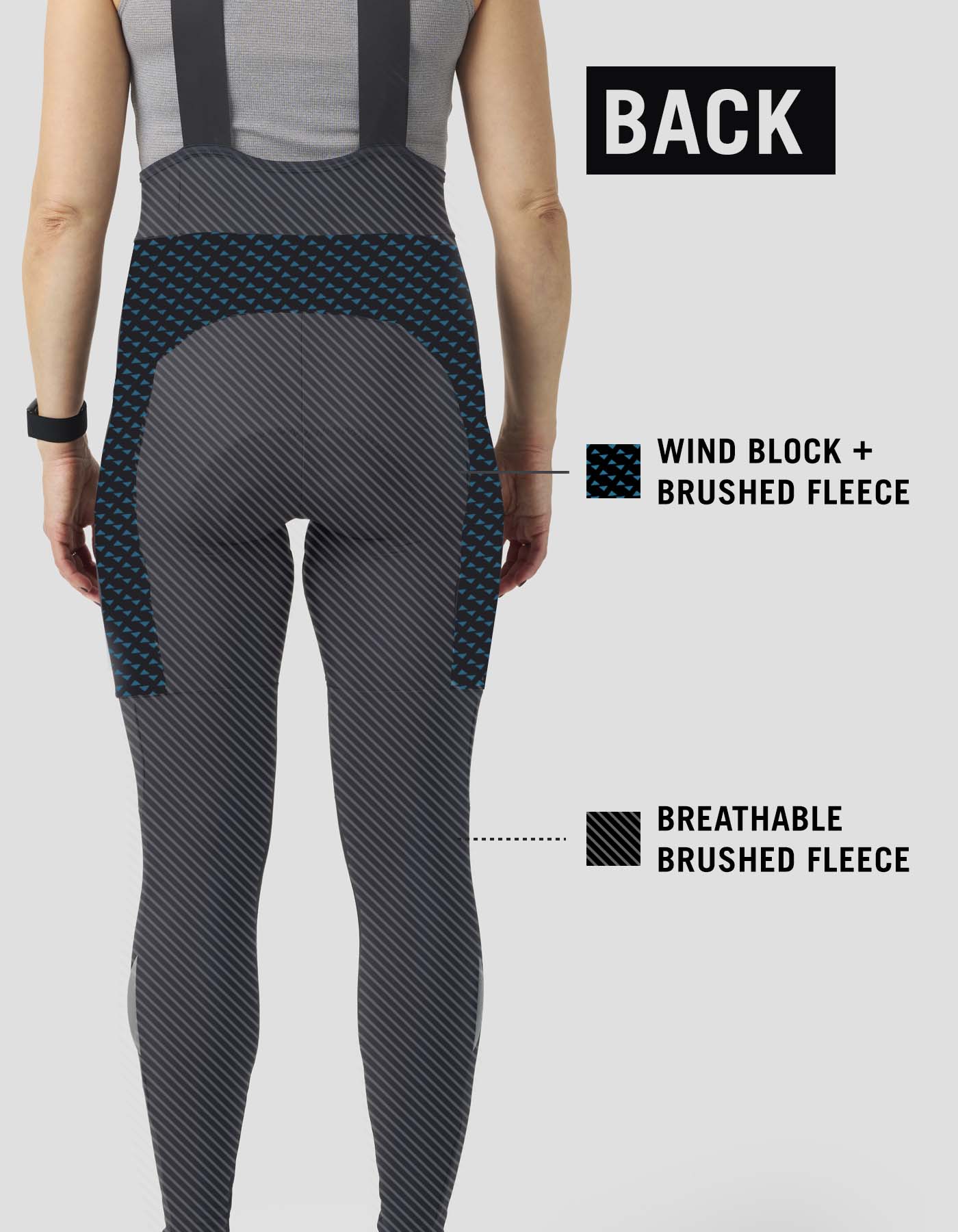 Blocking the wind in the front so you can party in the back. The front does the heavy lifting. A 310 gsm fabric with a wind-blocking membrane and a brushed inside keeps cold air out and warmth in. Spray rolls off thanks to a C0 DWR. The high waist hugs your core so you feel warm, supported, and steady on long winter miles.
