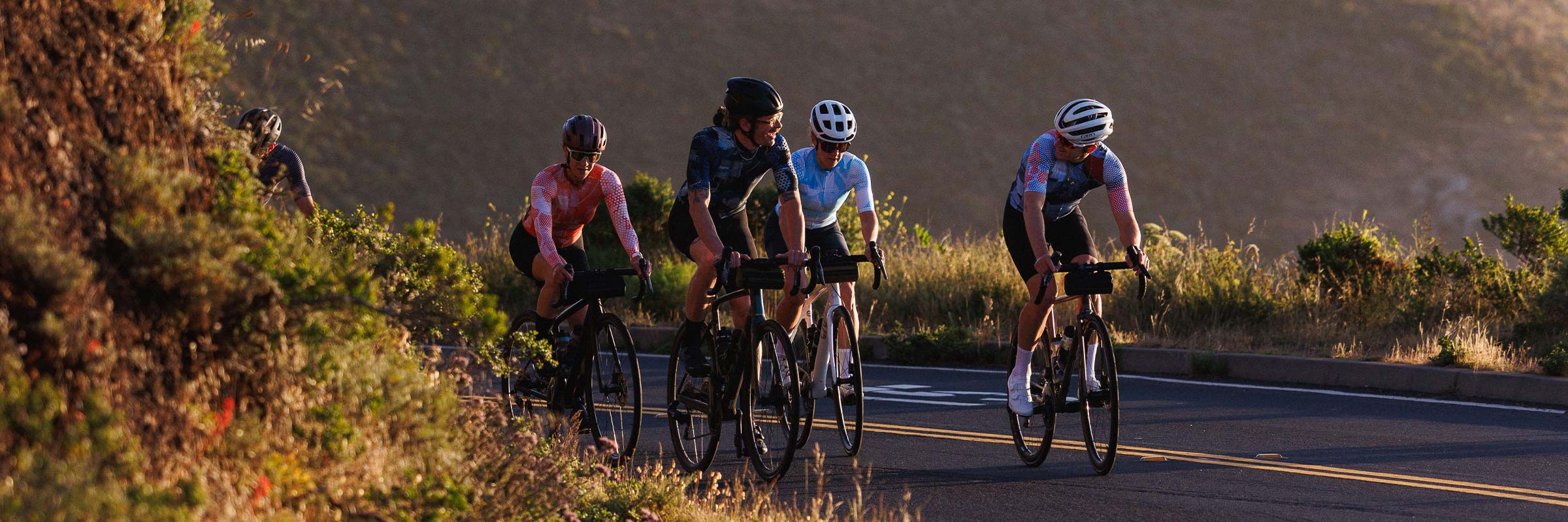 Our short-sleeve jerseys accommodate every Bay-Area microclimate: the race-weight Park Jersey keeps you aero and cool, the versatile House Jersey wicks hard for all-day road or gravel, and the Polartec-powered Micro Grid Jersey balances warmth and breathability when coastal fog rolls in. Each jersey features recycled fabrics, UPF protection, smart pocket layouts, and minimal branding.