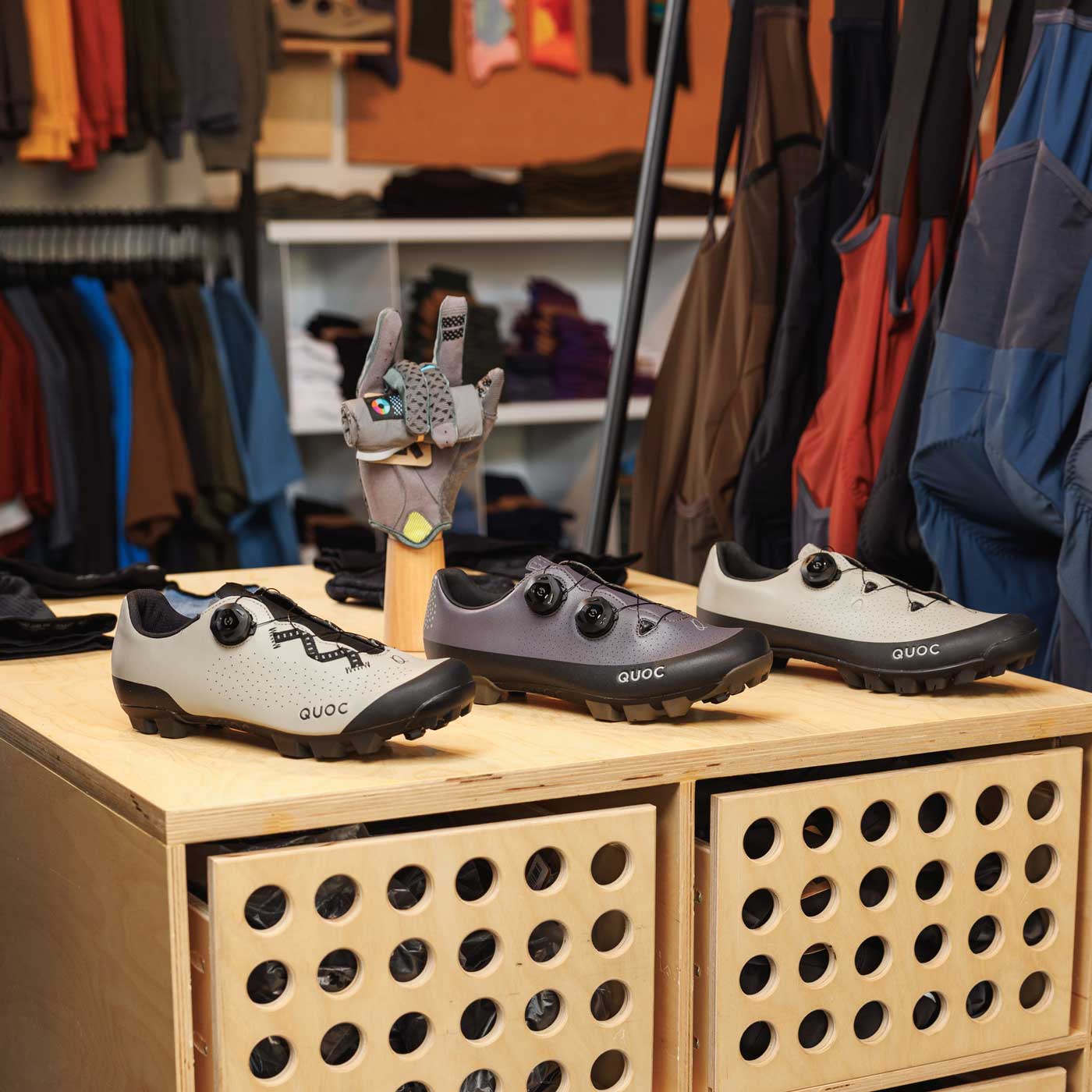 We're pretty particular when it comes to the gear we use. However, when we find something we like, we try to bring it into our showroom. We proudly carry: QUOC shoes, Ultradynamico tires, Rene Herse tires, Spurcycle Bells, and Andytown Coffee.
