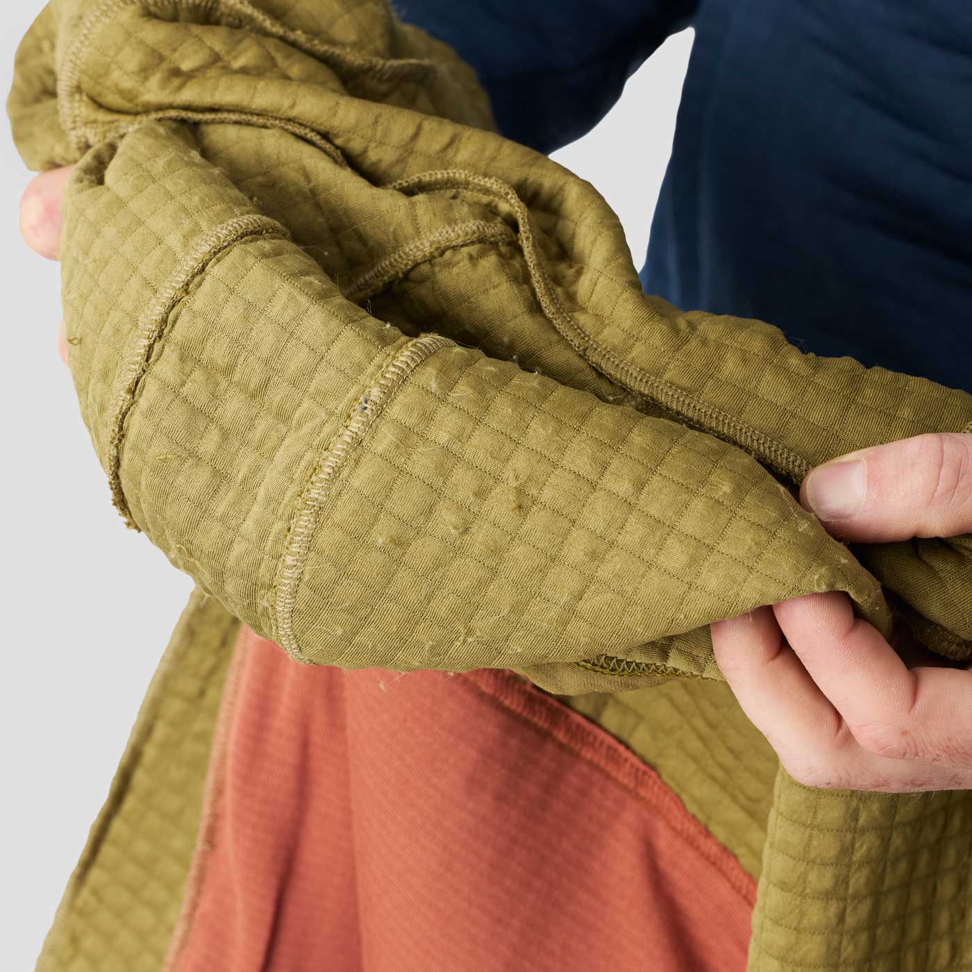 We design with certified recycled and natural fibers, and our Special Projects collection makes use of deadstock fabrics and materials. We prioritize Bluesign and Oeko-Tex certified textiles, and all of our DWR coatings are PFAS-free.