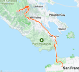 We ask everyone to start below 200 ft—say from SF, Mill Valley, Fairfax, Ross, or Stinson—so the full climb is part of the experience. It's a challenge after all.
