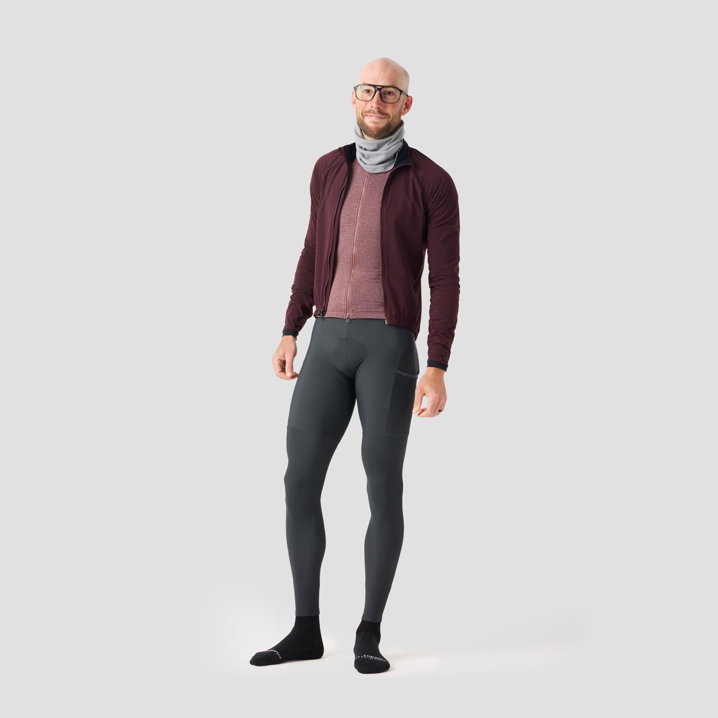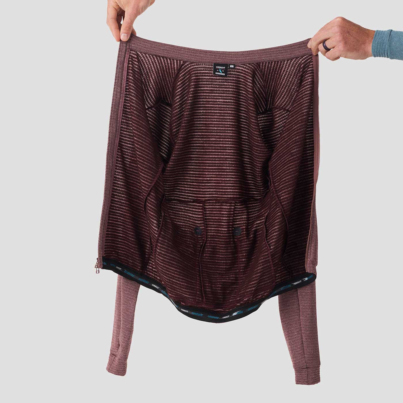 A winter bike jersey built with three of our favorite things: a gridded fleecy interior, Merino Wool, and Polartec® Power Wool™. This fabric combines the natural performance of extra-fine Merino with the durability and structure of a synthetic exterior. It’s naturally antimicrobial, moisture-wicking, and keeps you warm even when wet. The grid interior traps air for insulation when layered, while the open channels help release heat when you’re working hard. Bonus: Merino can wick moisture in its vapor state, keeping you drier and more comfortable on long rides.