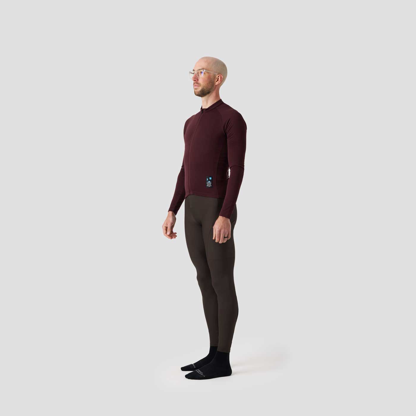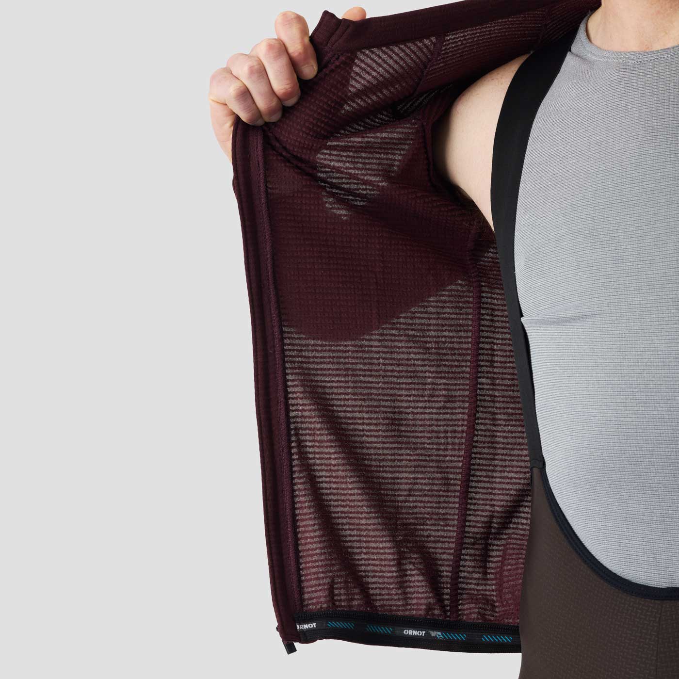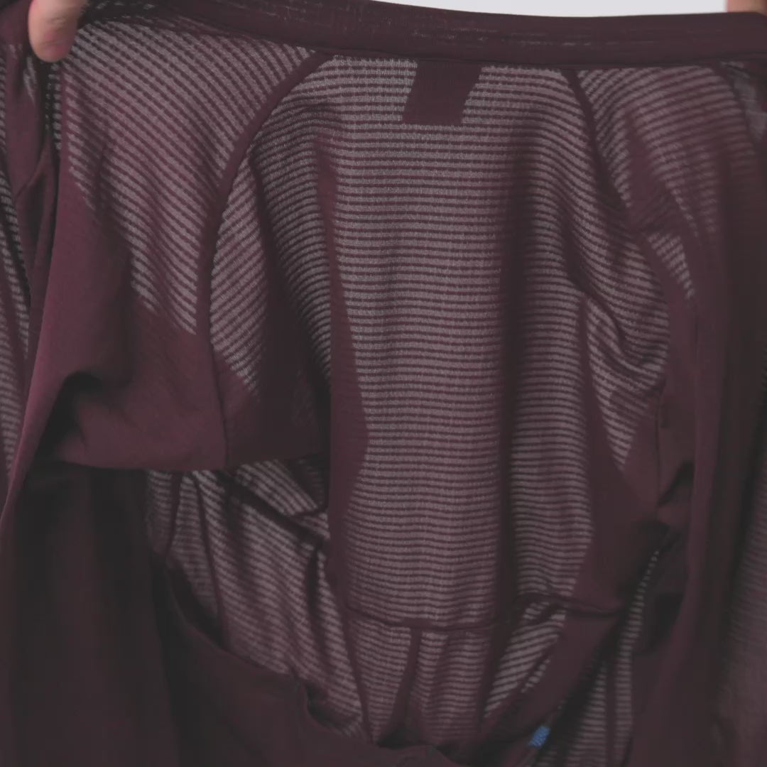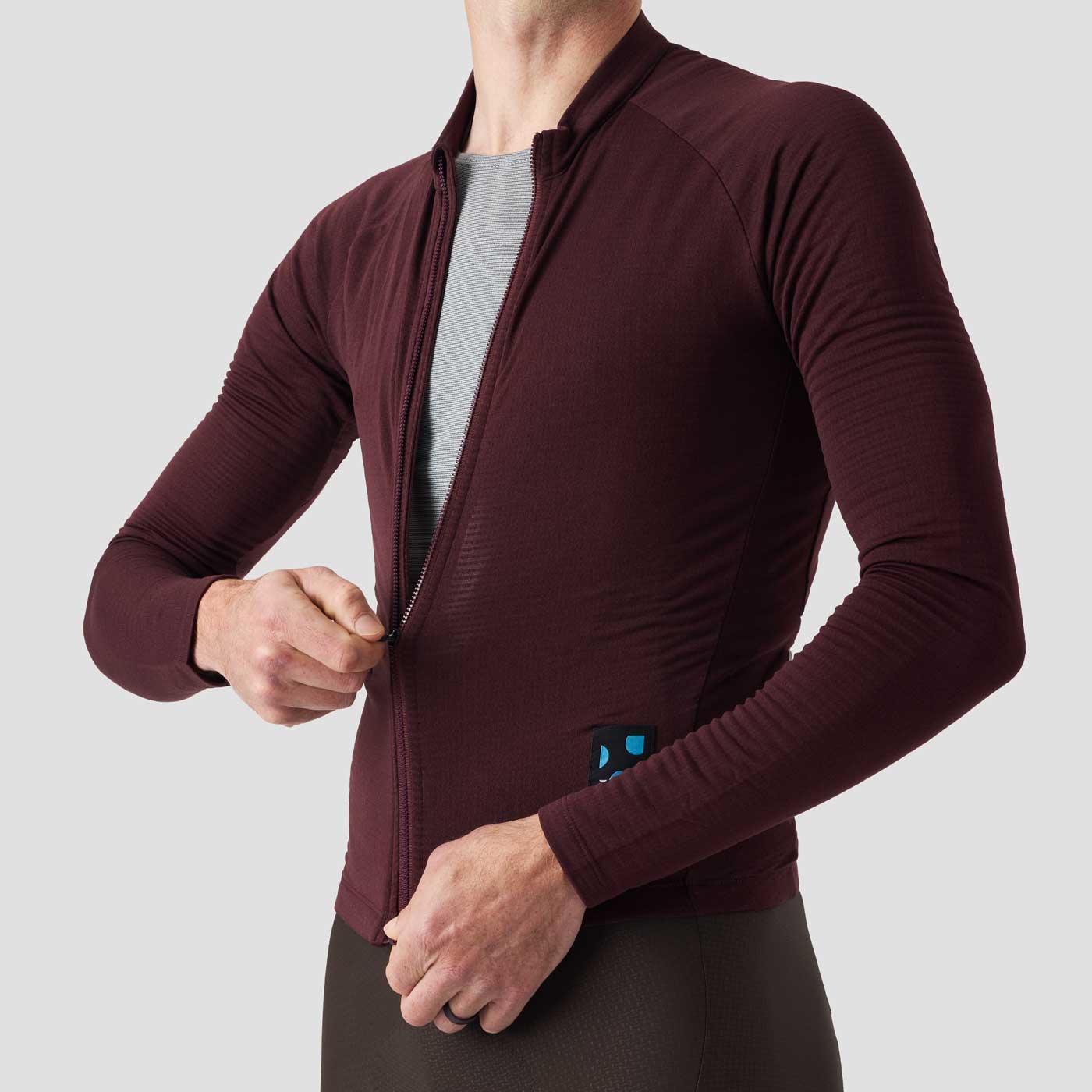 Typically, the brushed grid structure used in this jersey is associated with thermal clothing, but this version is light enough for summer temps. The small voids created by the grid, coupled with the fine knit, allow air to pass through. This keeps you cool when it’s hot. On the flip side, when you add a wind-blocking layer (Micro Climate or House Wind Vest), those same air pockets keep you warm all while wicking moisture away from your skin. It’s like magic (or physics).