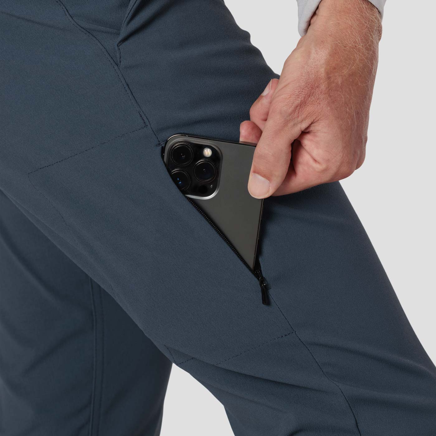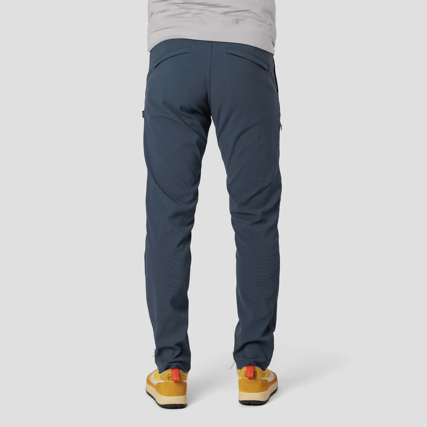 These do-it-all, sewn-in-the-USA pants can take you from the trail to the office (WFH Ornot). The technical 4-way stretch woven fabric makes them light enough to ride in and durable enough to be your daily driver. Constructed with the same recycled bluesign®-approved fabric used in our mission shorts, you can count on these pants to last. Stash your valuables in the rear zippered pockets or hidden thigh pocket and get lost. Roll up the cuffs to expose rear reflective detailing when you’re riding.