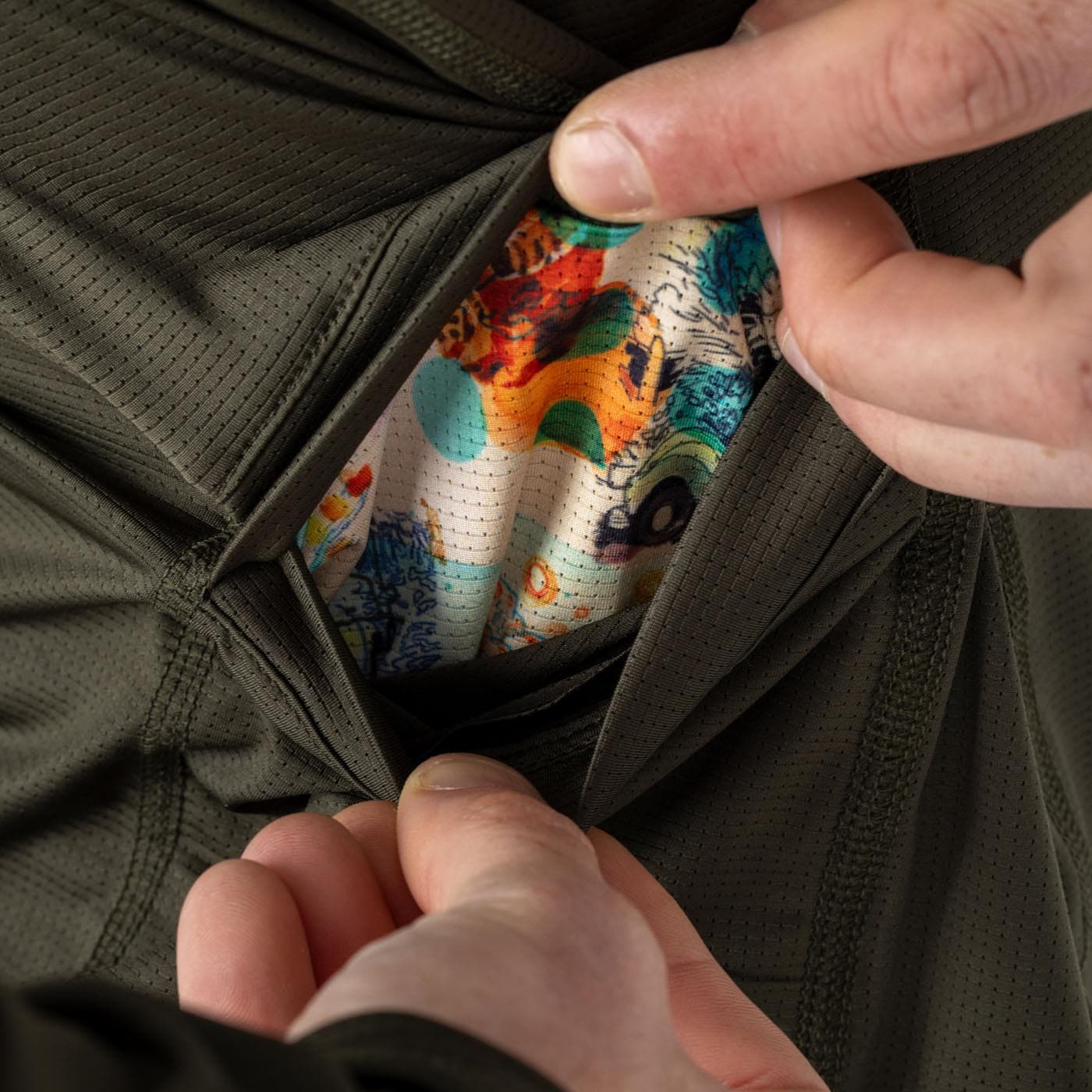 The bike-specific tailoring and loose fit allow for optimal airflow. Store your sunglasses or other small essentials in the convenient rear pocket which features a hidden Chris McNally sketchbook print. Designed to get your bronze tan on, Ornot.