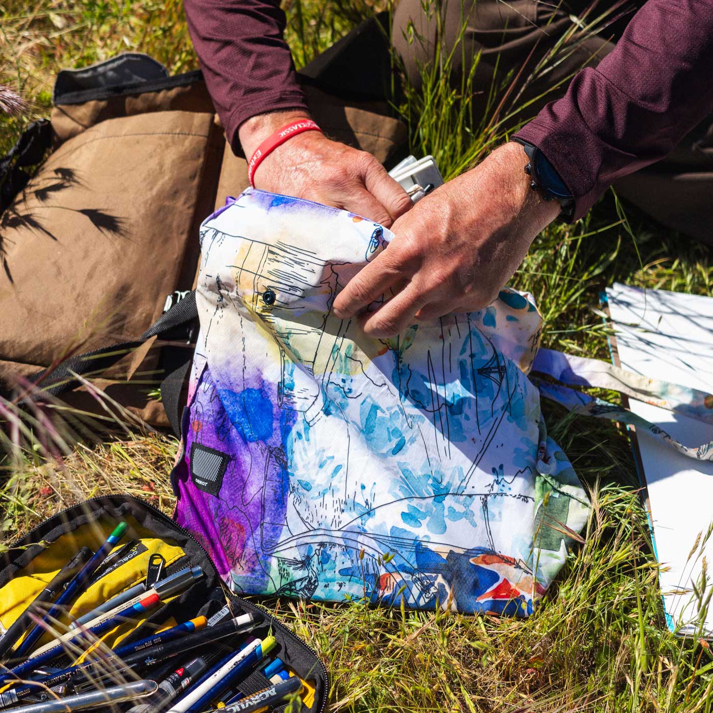 Crafted in California from recycled lightweight ripstop, this packable musette merges our love for post-ride snacks with our commitment to doing things differently. The integrated stash pocket is created from voids in our Micro Climate Jacket pattern (aka waste fabric that we don't want to throw away). We added a snap-secured flap to keep things safe and a pleated base to expand enough for that one thing you almost forgot.