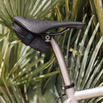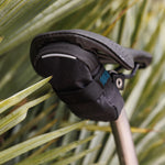 Instead of a bulky tool roll, we opted for a slim shape and rear-facing zipper which make it possible to access your small items in a hurry (plugs!) while leaving the bag on the saddle.