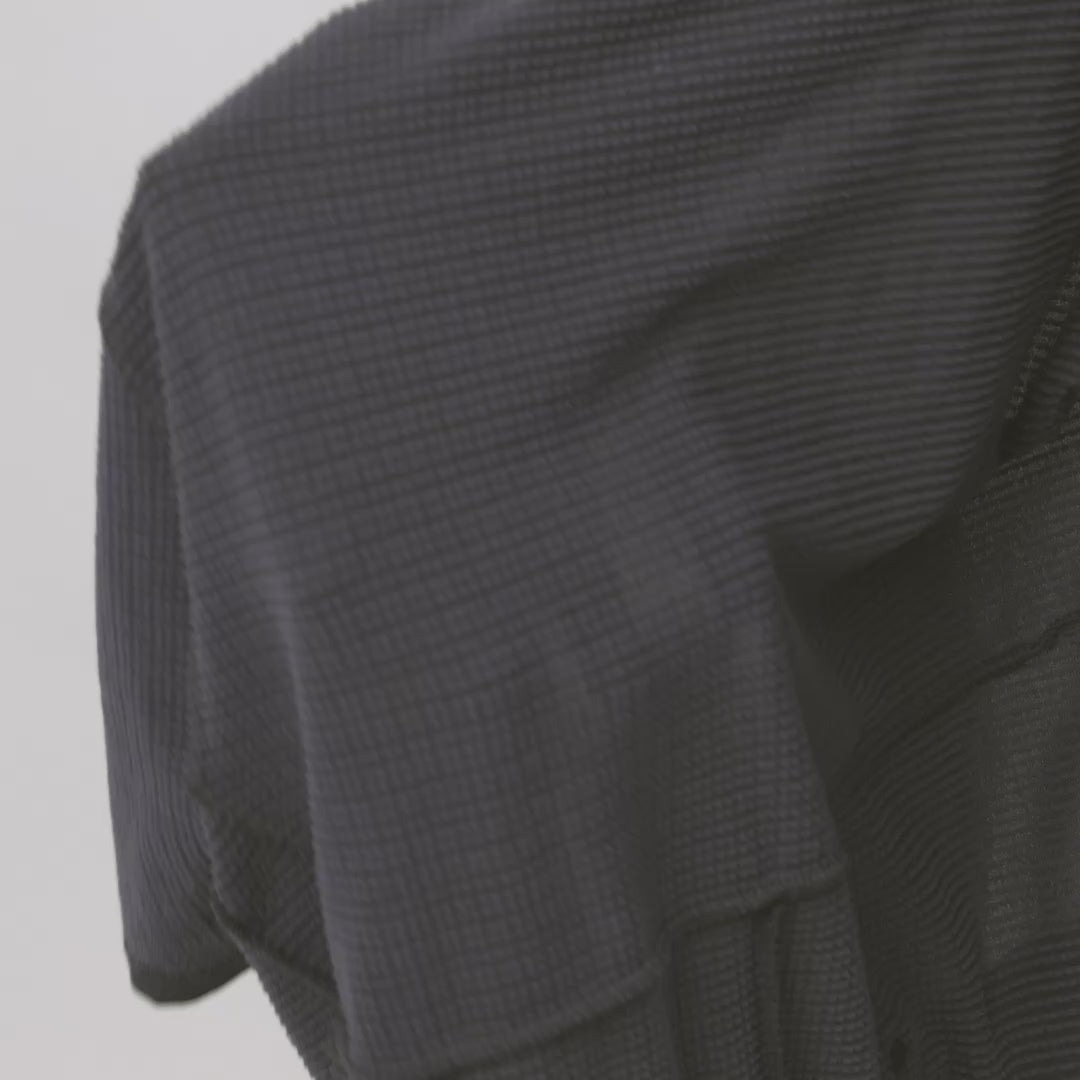 Our Micro Grid Jersey comes with a secret; it boasts the same fabric weight as a lightweight summer jersey, and its fine grid structure allows excellent airflow to keep you cool in the heat. However, when paired with a layer, the Polartec® Power Grid® fabric traps heat, keeping you warm. Its exceptional quick-drying properties make it comfortable in temps from 55° to 85°.